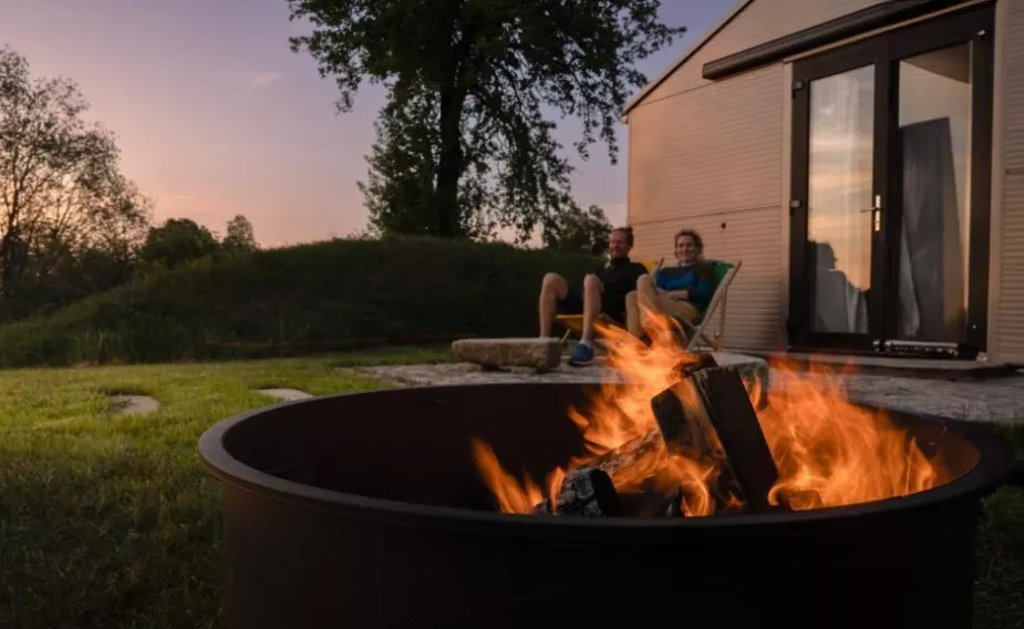Venkovní prostor je stejně lákavý jako interiér. Hosté si mohou užít posezení u "nekonečného ohně", který dodává místu jedinečnou atmosféru, a využít venkovní prostor pro grilování nebo večerní posezení pod hvězdami. Díky poloze ubytování zde panuje klid a soukromí, což z něj činí ideální místo pro odpočinek i společné chvíle s blízkými.