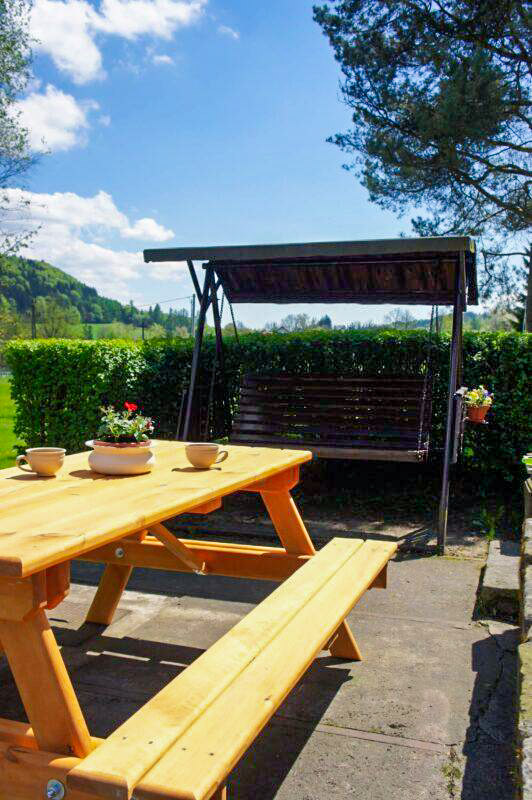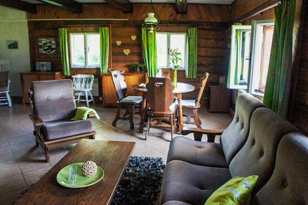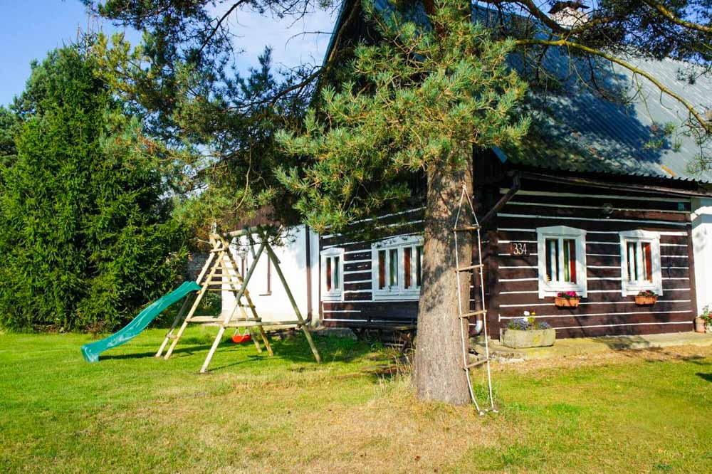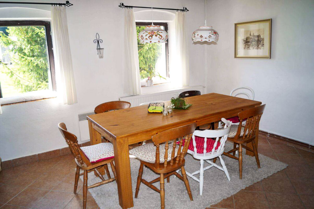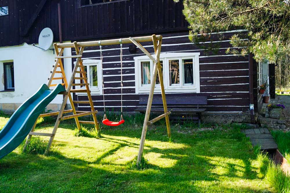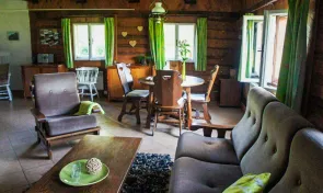 V přízemí či společenské části roubené chalupy se nachází místnost ke společenskému posezení, která je ideální pro večerní relaxaci nebo hry. K tomu přiléhá prostorná jídelna a malá, ale dobře vybavená kuchyňka, která umožňuje hostům pohodlnou přípravu vlastních pokrmů. Domácí mazlíčci jsou v chalupě povoleni za příplatek a s nutností úhrady vyššího poplatku za úklid. Celé venkovní prostranství chalupy je k dispozici pro odpočinek uprostřed kraje podivuhodné krásy.