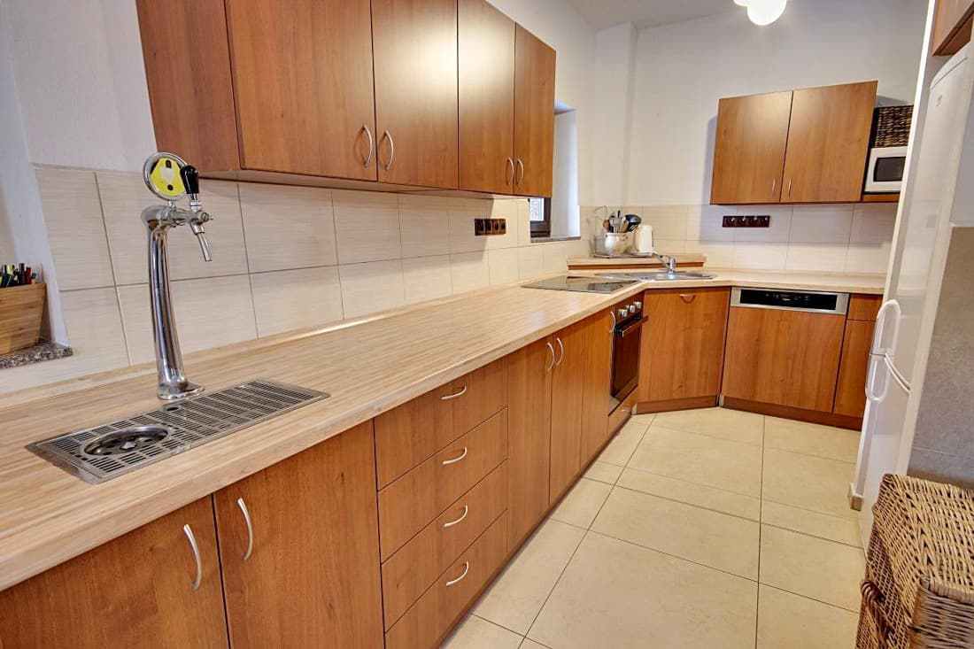 Hosté si mohou během pobytu zařídit také pohodlné stravování. Po domluvě je možné zajistit čerstvé rybí speciality, například pstruha, sivena, štiku nebo úhoře, které jsou připravené tak, aby je stačilo jen položit na gril. K dispozici jsou také různé masové speciality – klobásy, pečená kolena, naložené steaky nebo větší gril mix vhodný pro skupiny. Milovníci piva ocení možnost objednat si sudové pivo, například značky Březí Koza nebo Pilsner Urquell, které si můžete vychutnat přímo z výčepního zařízení v chalupě. Příjemným zpestřením je také možnost objednat pizzu z rodinné pizzerie s rozvozem zdarma přímo na chalupu.