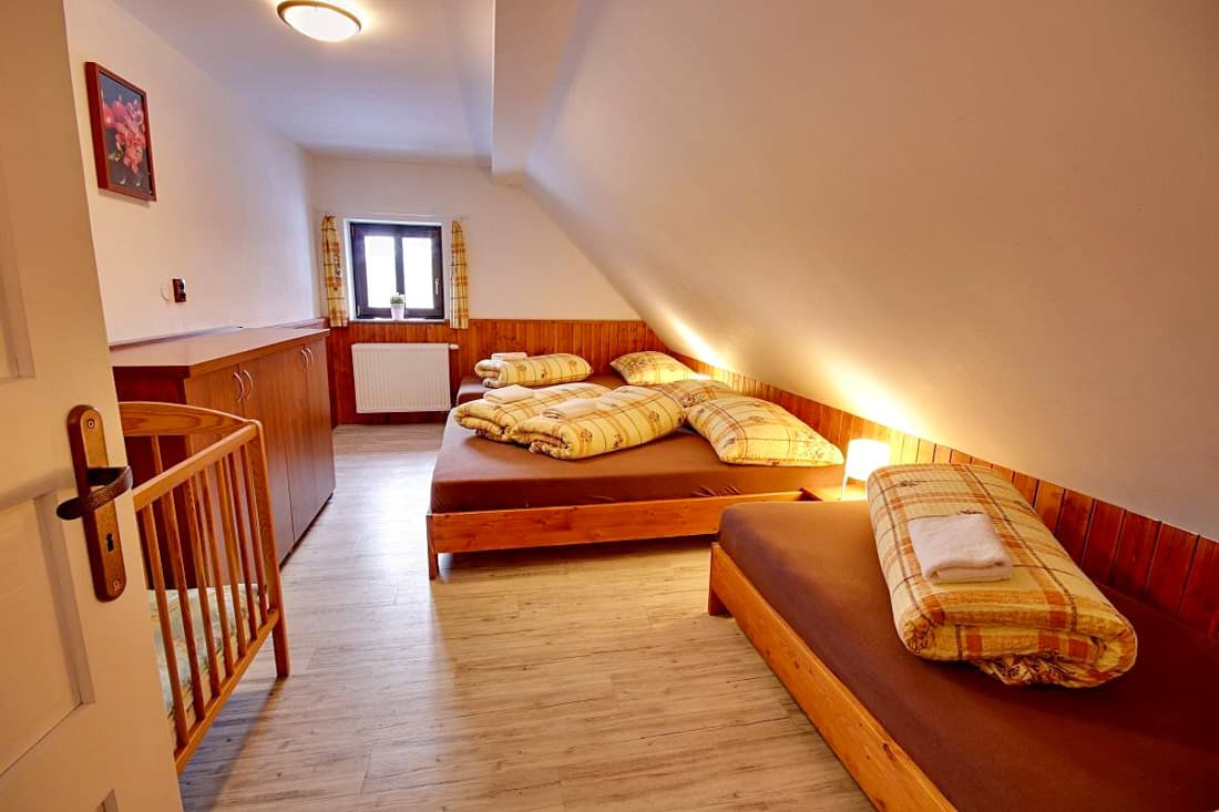 Chalupa Jiřík nabízí ubytování na polosamotě v obci Chlum v srdci Národního parku Šumava. Prostorná chalupa pro větší skupiny až 18 osob spojuje klid přírody, komfortní zázemí a skvělé možnosti pro aktivní dovolenou – od cyklistiky a turistiky až po odpočinek ve vířivce nebo sauně. celý popis