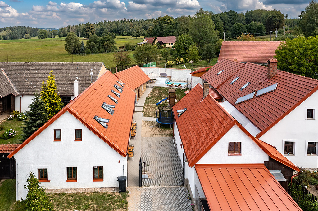 Chalupa v Leštině čp. 3 je pojata moderně. Kapacitu 16 osob je možné navýšit až na 31 osob. Objekt disponuje šesti ložnicemi s různým počtem lůžek a v každé ložnici je LCD televize. Vždy dva pokoje využívají společnou moderní koupelnu se sprchovým koutem a WC. Určitě oceníte dobře vybavenou kuchyni a prostorný obývací pokoj s krbovými kamny. Výhodou tohoto ubytování je wellness místnost se saunou pro 8 osob, vířivkou a odpočívárnou. Potěší vás velká herna, kde si zahrajete šipky, stolní tenis a další hry. K dispozici je i dětská herna. Na oploceném přilehlém pozemku si užijete skvělou relaxaci. Wellness nabízí finskou saunu, infra saunu, vířivku a odpočívárnu. Můžete posedět v osvětlené pergole s grilem. Pro děti je určeno dětské hřiště s herními prvky a trampolínou. V okolí je mnoho zajímavých míst k návštěvě. Například krásný rybník Komorník, můžete dojít k Vysokému kameni se skalními masivy u Kunžaku, prohlédnete si obec Strmilov a mnoho dalšího.
