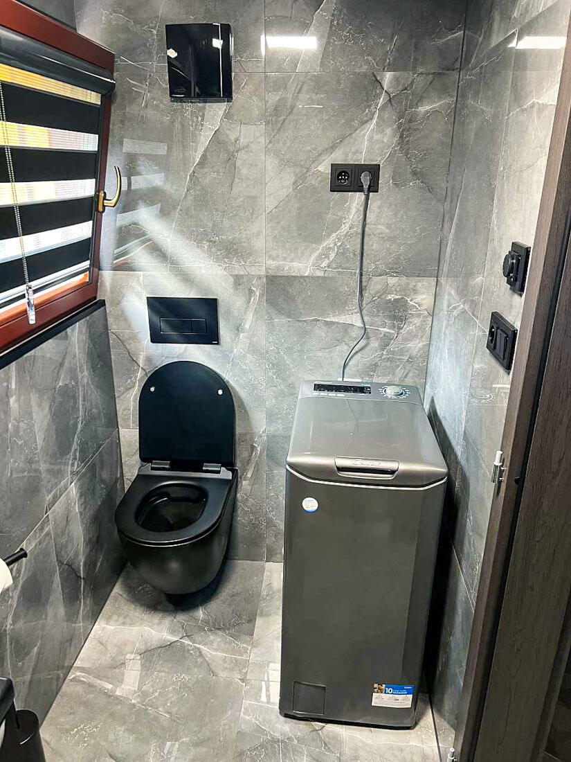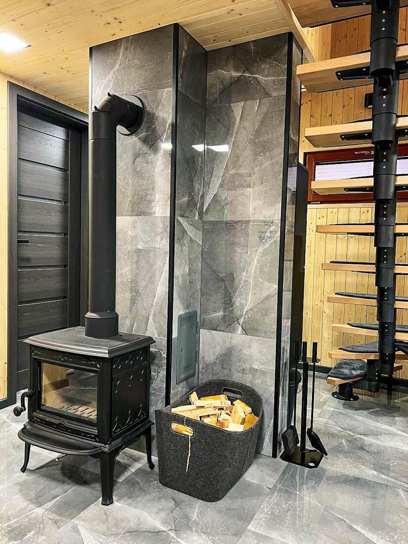 V přízemí objektu se nachází obývací místnost s rohovou sedací soupravou, televizí, větším jídelním stolem a kompletně zařízeným kuchyňským koutem. Chata je vytápěna elektricky, přičemž obývací pokoj může být přitápěn krbovými kamny, jež dotváří příjemnou atmosféru. Koupelna v přízemí vás potěší podlahovým vytápěním, sprchovým koutem a pračkou. Celoročně je k dispozici krytá venkovní terasa s grilem a příjemným posezenímm, odkud je vidět na dětské hřiště (pískoviště, hračky, skluzavka). Pobyt si můžete zpříjemnit relaxem ve venkovním vyhřívaném sudu.