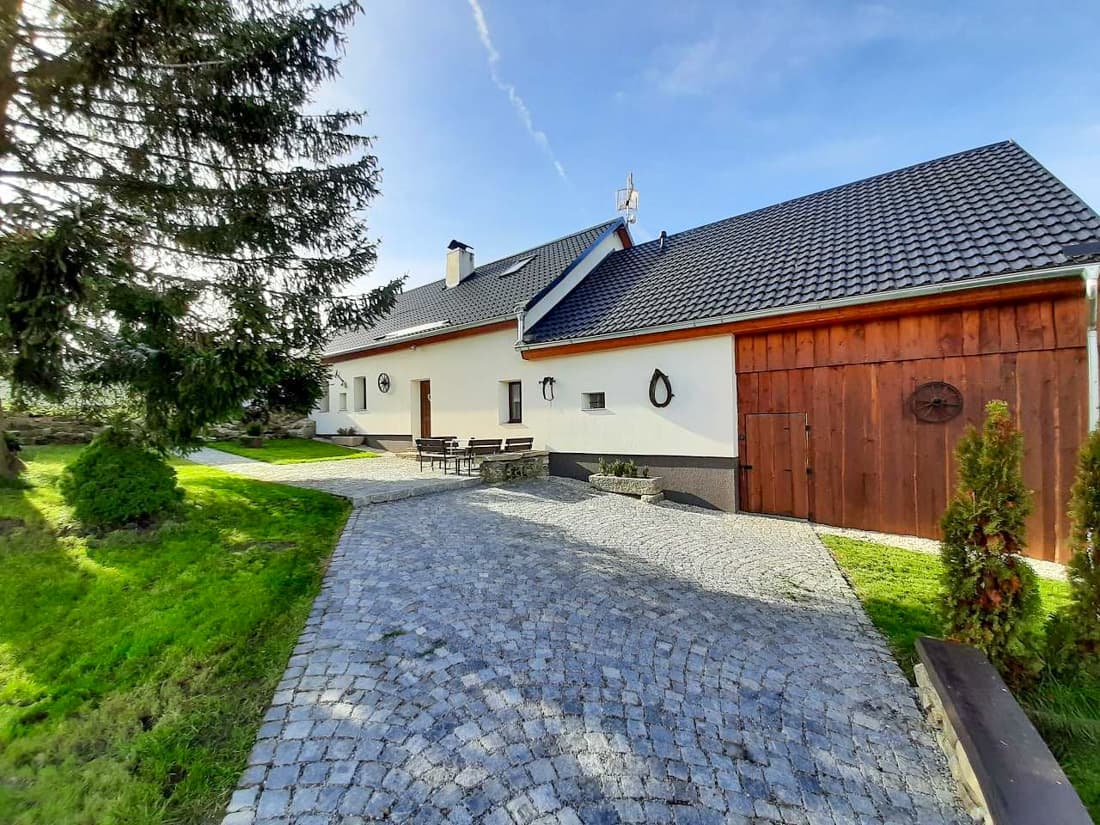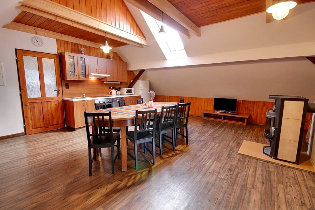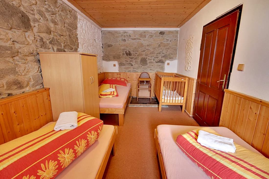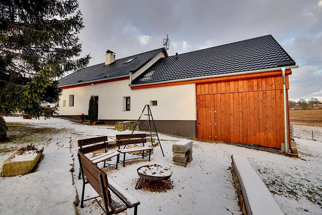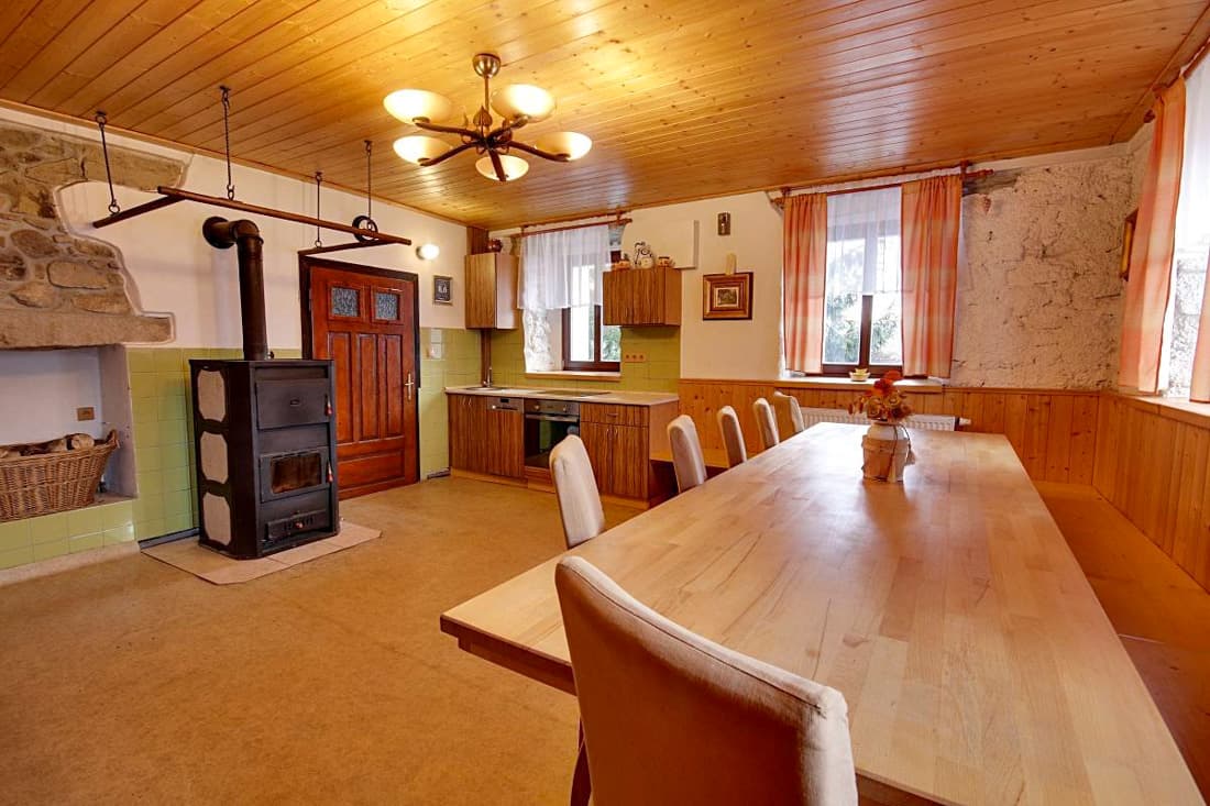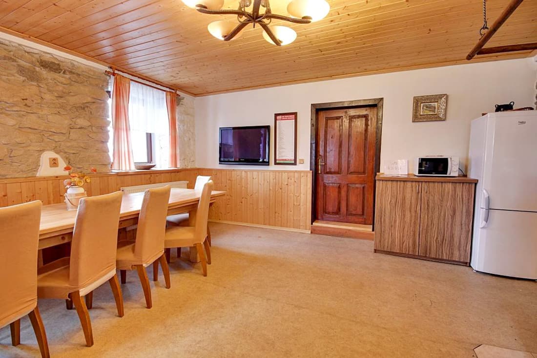 Po kompletní rekonstrukci vznikla prostorná chalupa vhodná až pro 15 osob, která je rozdělena na dvě samostatné části – spodní a podkrovní. Každá část má vlastní vchod, plně vybavenou kuchyň (myčka nádobí, horkovzdušná trouba, sklokeramická varná deska, výčepní zařízení, lednice, mikrovlnná trouba, nádobí) se společenskou místností a krbem, samostatné ložnice a vlastní sociální zázemí. Celkem jsou k dispozici čtyři ložnice a čtyři koupelny, takže chalupa poskytuje dostatek komfortu i pro větší skupiny hostů. Obě části mohou fungovat samostatně nebo být propojeny vnitřním průchodem.