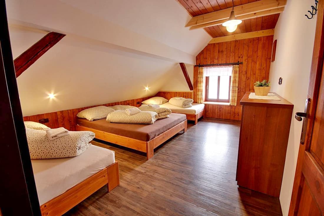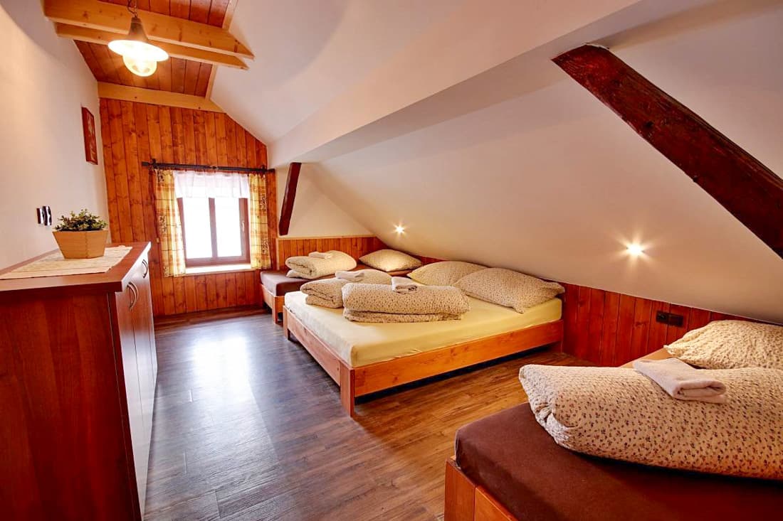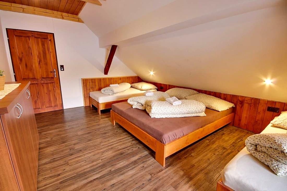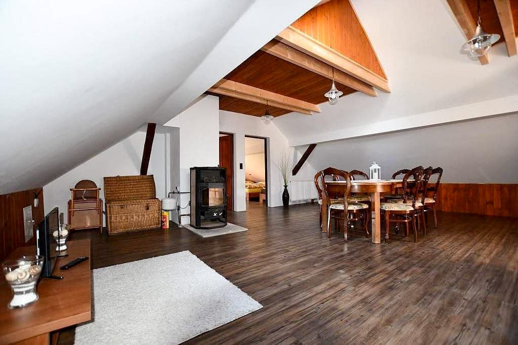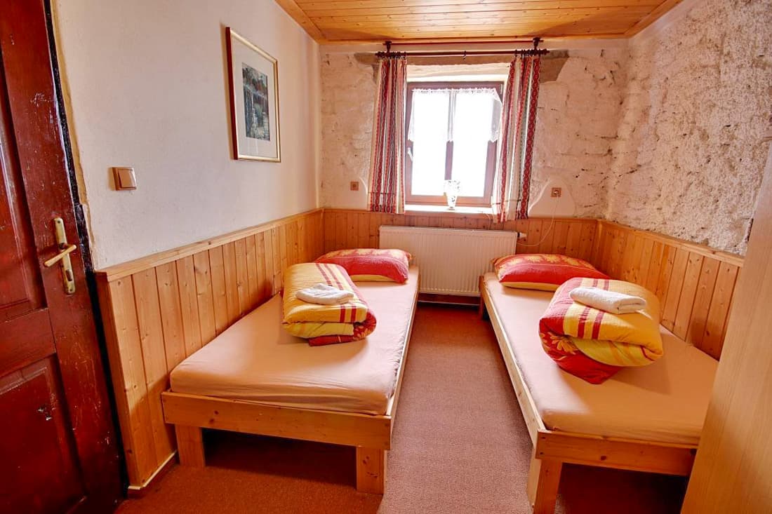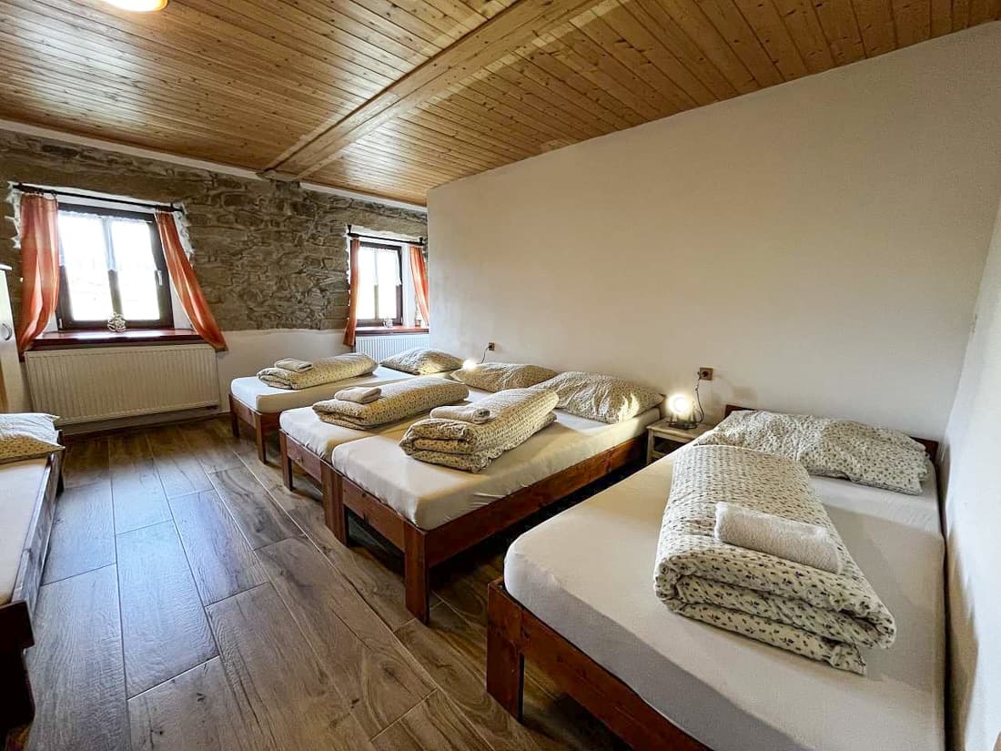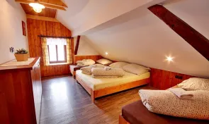 Po kompletní rekonstrukci vznikla prostorná chalupa vhodná až pro 15 osob, která je rozdělena na dvě samostatné části – spodní a podkrovní. Každá část má vlastní vchod, plně vybavenou kuchyň (myčka nádobí, horkovzdušná trouba, sklokeramická varná deska, výčepní zařízení, lednice, mikrovlnná trouba, nádobí) se společenskou místností a krbem, samostatné ložnice a vlastní sociální zázemí. Celkem jsou k dispozici čtyři ložnice a čtyři koupelny, takže chalupa poskytuje dostatek komfortu i pro větší skupiny hostů. Obě části mohou fungovat samostatně nebo být propojeny vnitřním průchodem.