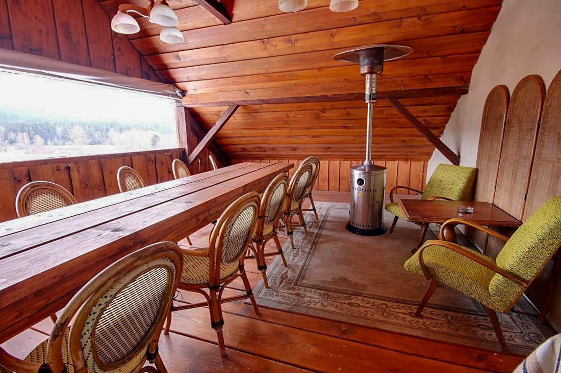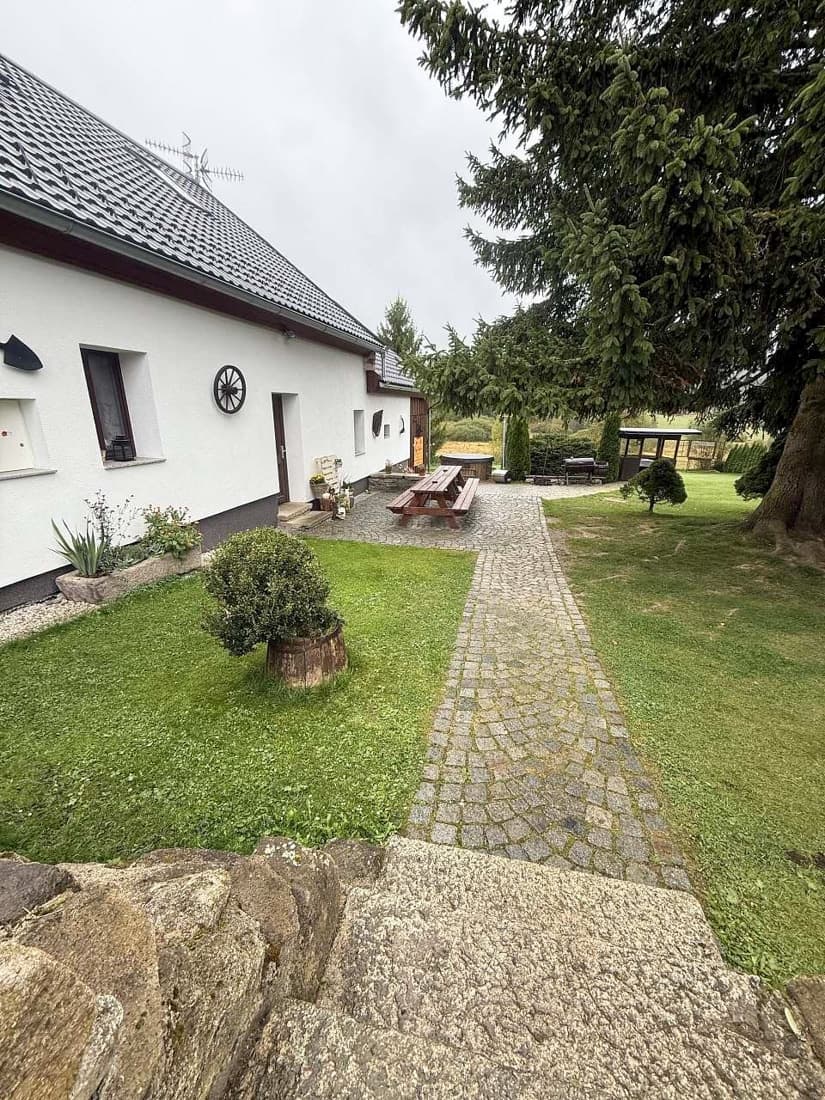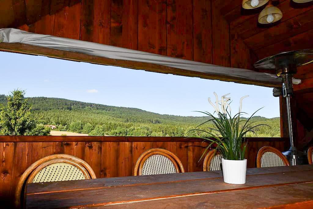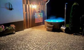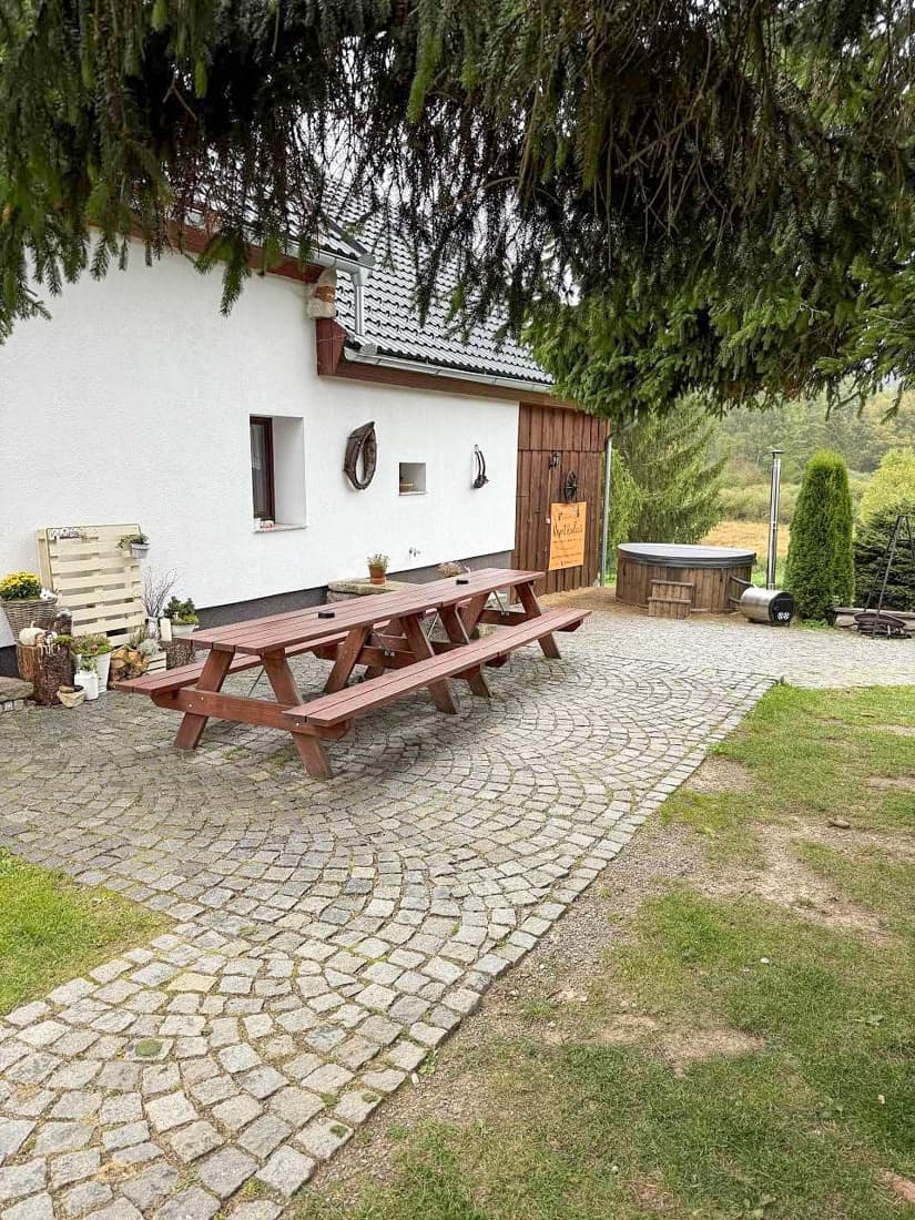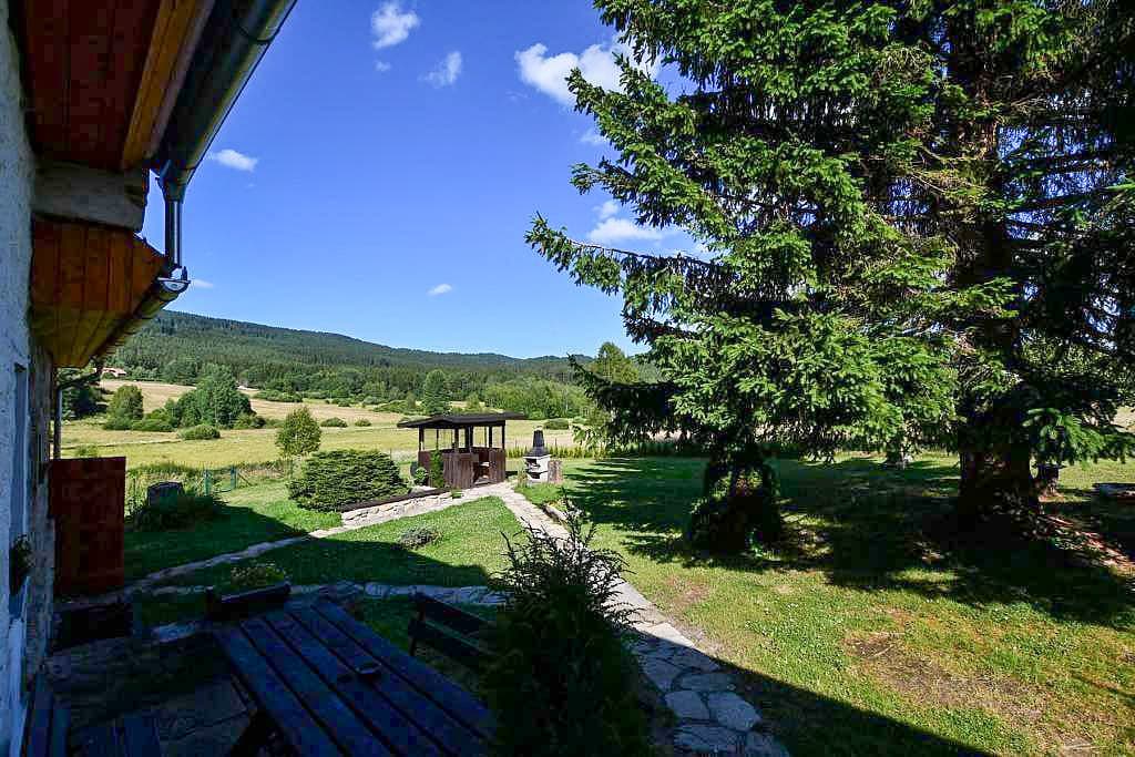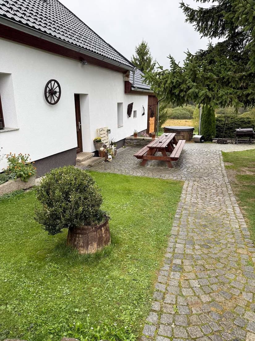 Velkým lákadlem je také venkovní wellness zóna. Hosté mohou relaxovat ve vířivce nebo si dopřát odpočinek v nově vybudované sauně. K příjemnému posezení slouží dřevěná pergola s grilem, ohniště a prostorná zahrada obklopená šumavskou přírodou. Díky vzdálenosti nejbližších sousedů si zde hosté užijí skutečný klid a soukromí.