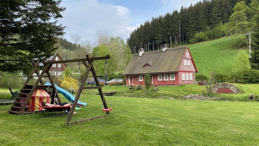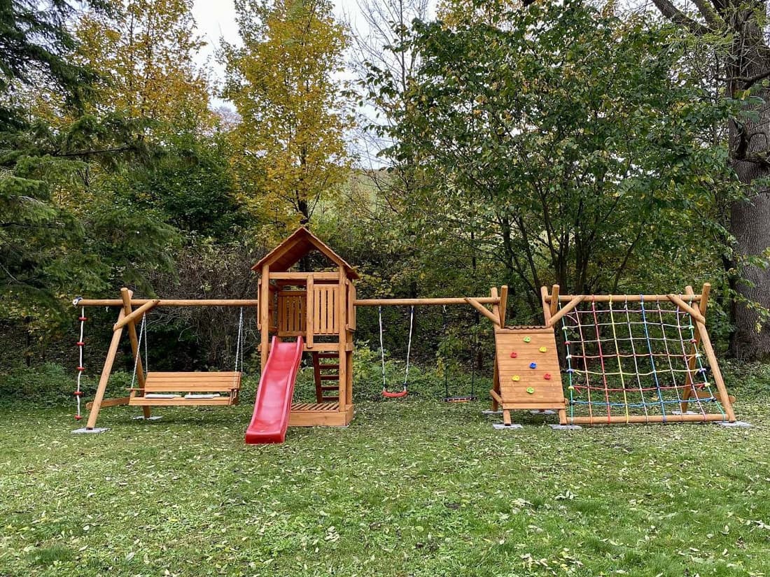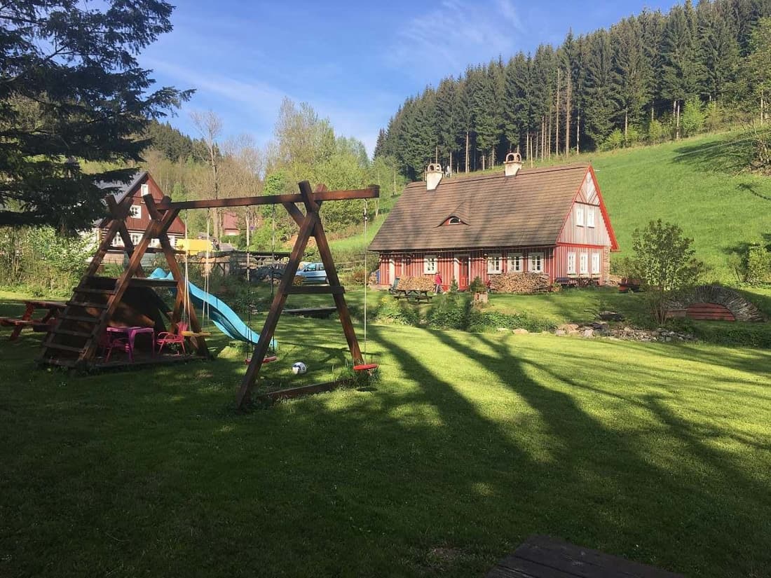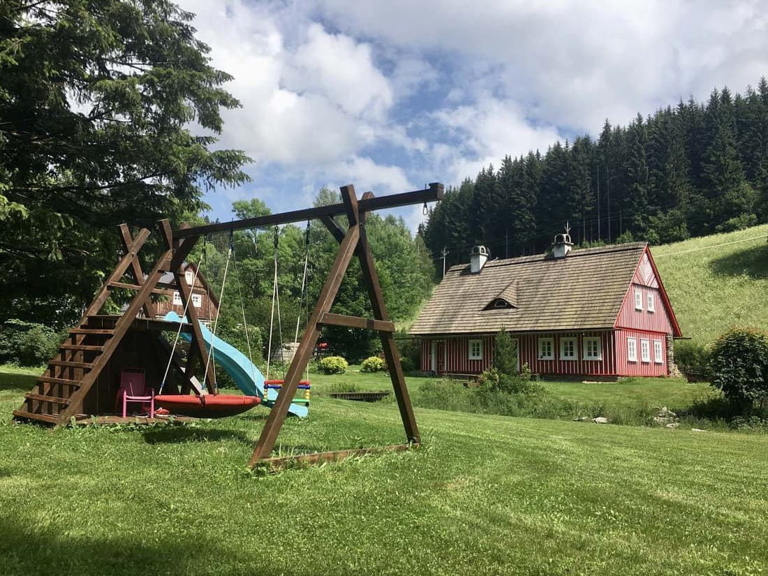 Velkým lákadlem je prostorná zahrada s potůčky a jezírky, která nabízí dostatek prostoru pro relaxaci i zábavu. Děti ocení hřiště s houpačkami, skluzavkou a pískovištěm, zatímco dospělí si mohou užít posezení u ohniště nebo grilování pod širým nebem.