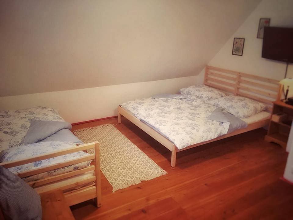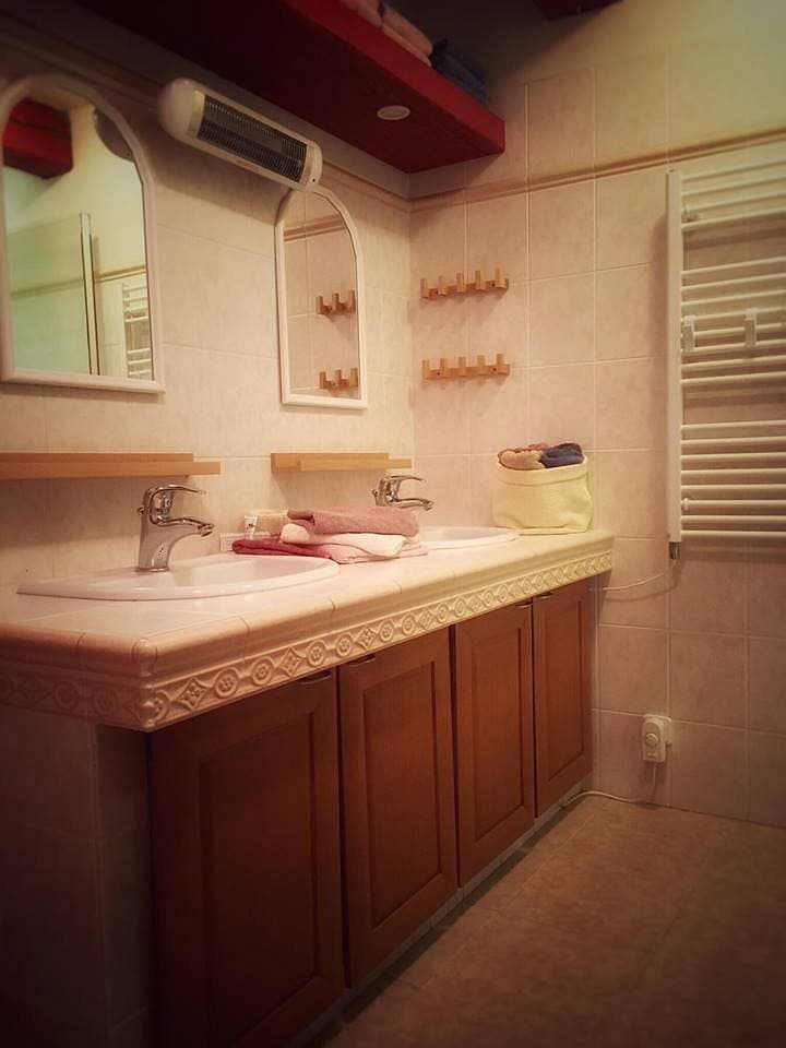 K dispozici je koupelna se sprchovým koutem a dvě toalety, nechybí ani praktické zázemí jako Wi-Fi připojení či parkování přímo u objektu.