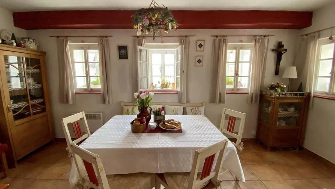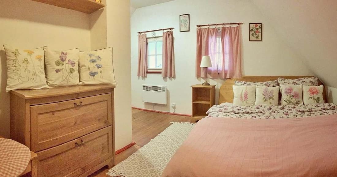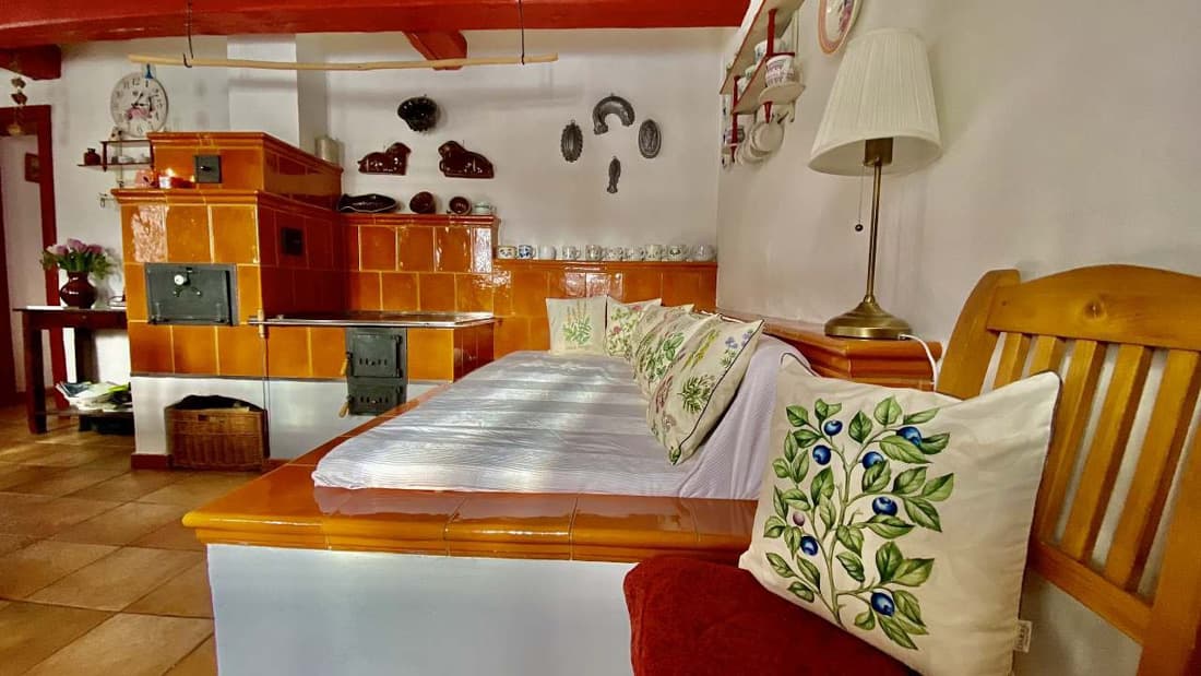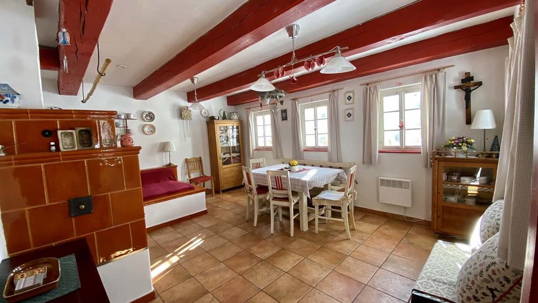 Chalupa nabízí ubytování ve třech ložnicích – dvou třílůžkových a jedné jednolůžkové, přičemž jedna z nich je vybavena dětskou postýlkou. Dominantou interiéru je útulná sednice s kachlovými kamny a pecí, kde si můžete zatopit, odpočívat nebo si dokonce připravit něco dobrého. Atmosféru horské chalupy doplňuje plně vybavená kuchyně (sklokeramická varná deska, mikrovlnná trouba, myčka nádobí, horkovzdušná trouba, topinkovač, sendvičovač, rychlovarná konvice, kávovar).