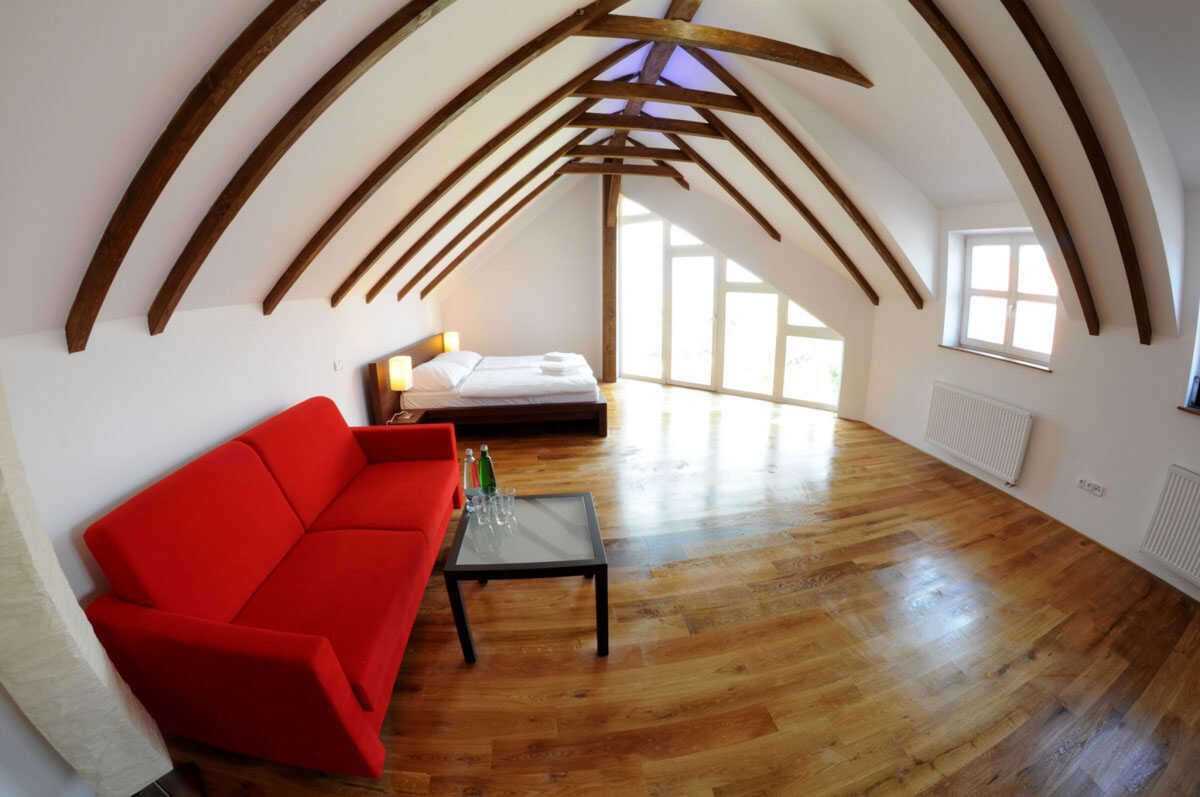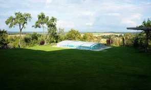 V objektu se nachází prostorná společenská místnost s prosklenou terasou, barem, výčepním zařízením, krbem a vlastním sociálním zázemím, kterou lze v rámci pobytu pronajmout až pro 65 osob. Hosté si mohou užívat také vinný sklípek, domácí saunu a vyhřívaný venkovní bazén se slanou vodou. V uzavřeném dvoře je dětský koutek s houpačkou, pískovištěm, trampolínou a skluzavkou. Chalupu obklopuje rozlehlá přírodní zahrada certifikovaná v rámci programu „Natur im Garten“. V její těsné blízkosti se navíc nachází víceúčelové hřiště s umělým trávníkem, které si lze pronajmout.