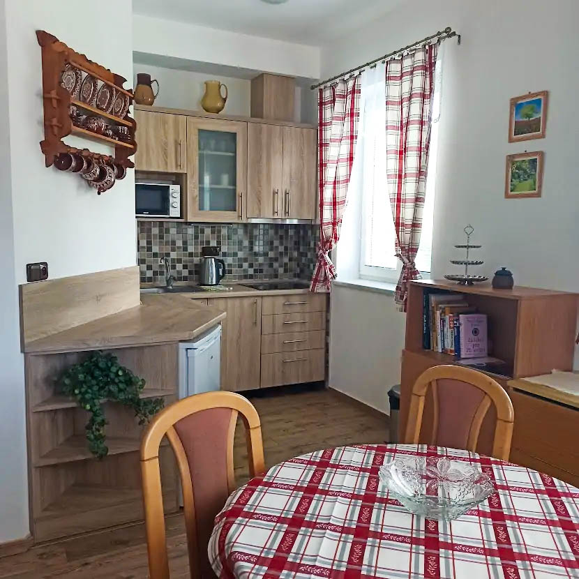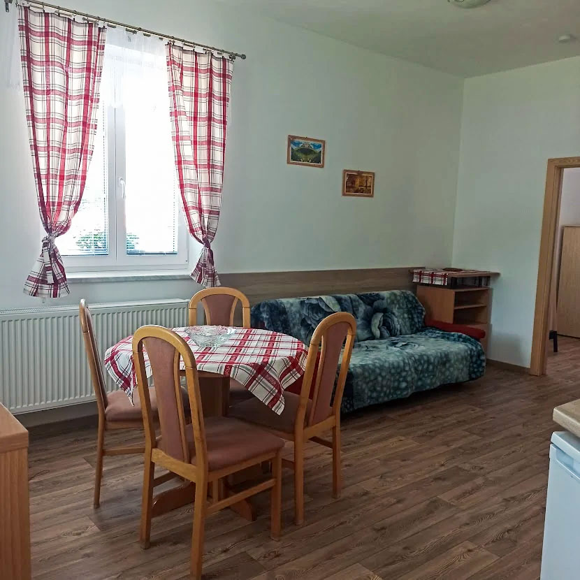 Jednotlivé apartmány jsou řešené tak, aby si každý host našel to svoje – od jednodušších pokojů s vlastní koupelnou (apartmány A a D), přes čtyřlůžkové a pětilůžkové apartmány s kuchyňským koutem (B a C), až po rodinný apartmán E v přízemí s vlastní malou infrasaunou pro 2 osoby. K dispozici je také čtyřlůžkový podkrovní pokoj s vlastním sociálním zázemím. Všechny ubytovací jednotky mají vlastní koupelnu, pohodlná lůžka a praktické úložné prostory. V objektu je k dispozici wellness zázemí se dvěma infrasaunami (jedna společná, jedna soukromá v apartmánu E), vytápěná lyžárna se sušákem bot a oděvů a uzamykatelná úschovna kol a kočárků v garáži. Parkování pro hosty je přímo u objektu a příjezd je bezproblémový i v zimě.