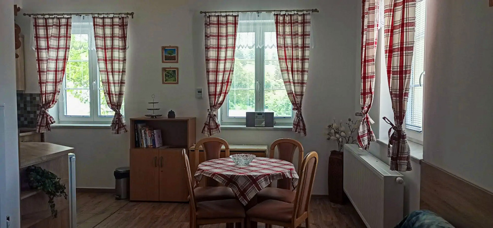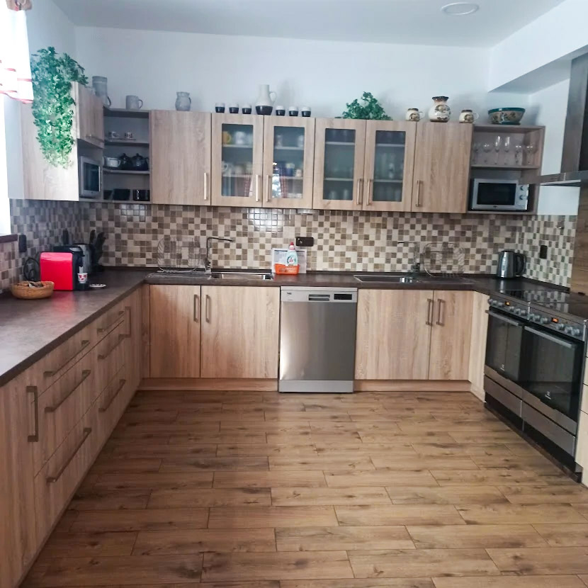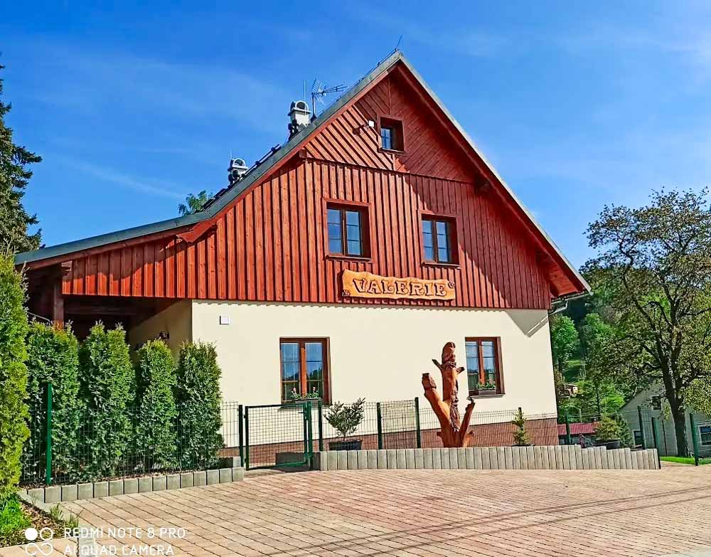 Chalupa Valerie nabízí celoroční ubytování v nově vybudované rekreační chalupě s kapacitou až 25 osob. Ubytování je rozloženo do 5 apartmánů a jednoho podkrovního pokoje, každý s vlastním sociálním zařízením. V přízemí chalupy je velká, útulná společenská místnost s posezením pro celou kapacitu objektu (TV, satelit, Wi-Fi), kde se pohodlně potkají rodiny i větší skupiny přátel. Na společenskou místnost navazuje prostorná, plně vybavená kuchyň se dvěma kombinovanými sporáky, dvěma lednicemi s mrazákem, mikrovlnnými troubami, myčkou nádobí, kávovarem, dostatkem nádobí i pracovní plochy – ideální pro společné vaření a večerní posezení.
