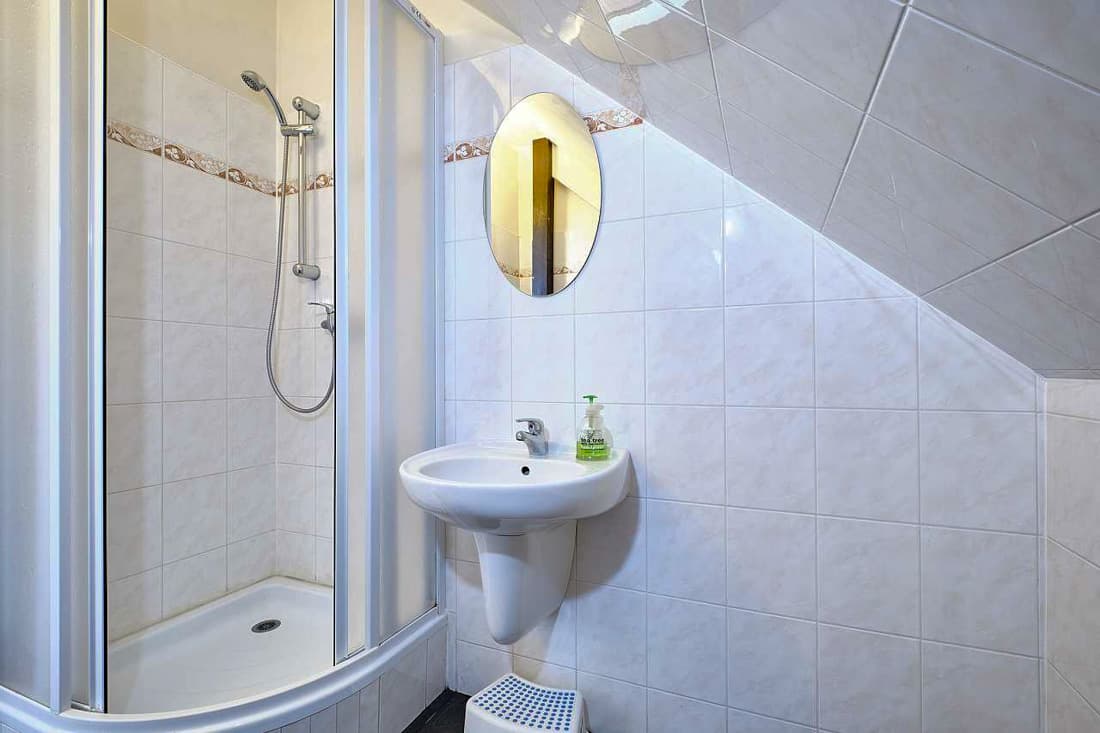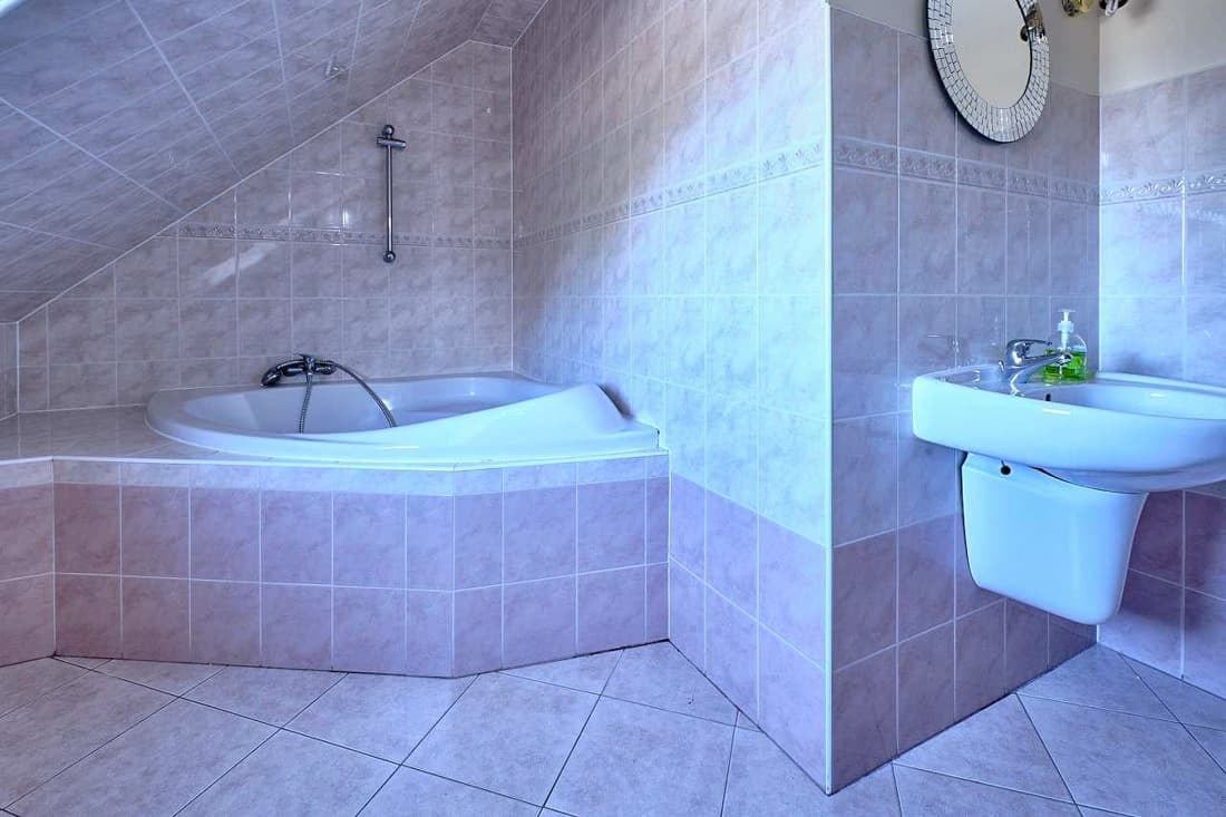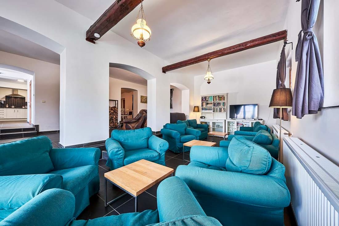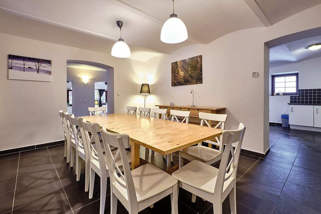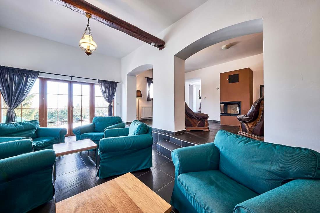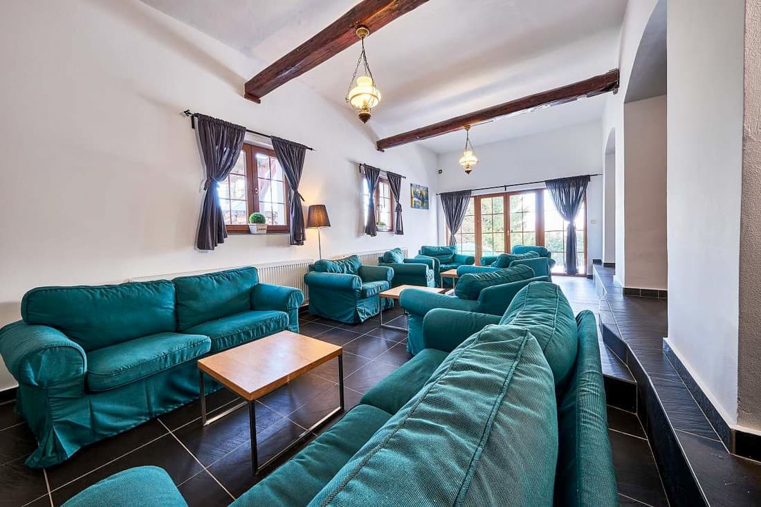 K dispozici je celkem 5 koupelen (4x sprchový kout a 1x vana) a 7 toalet, což zajišťuje maximální komfort i při plné obsazenosti. Moderní vytápění tepelným čerpadlem doplňuje akumulační krb, který vytváří příjemnou atmosféru zejména v zimních měsících.