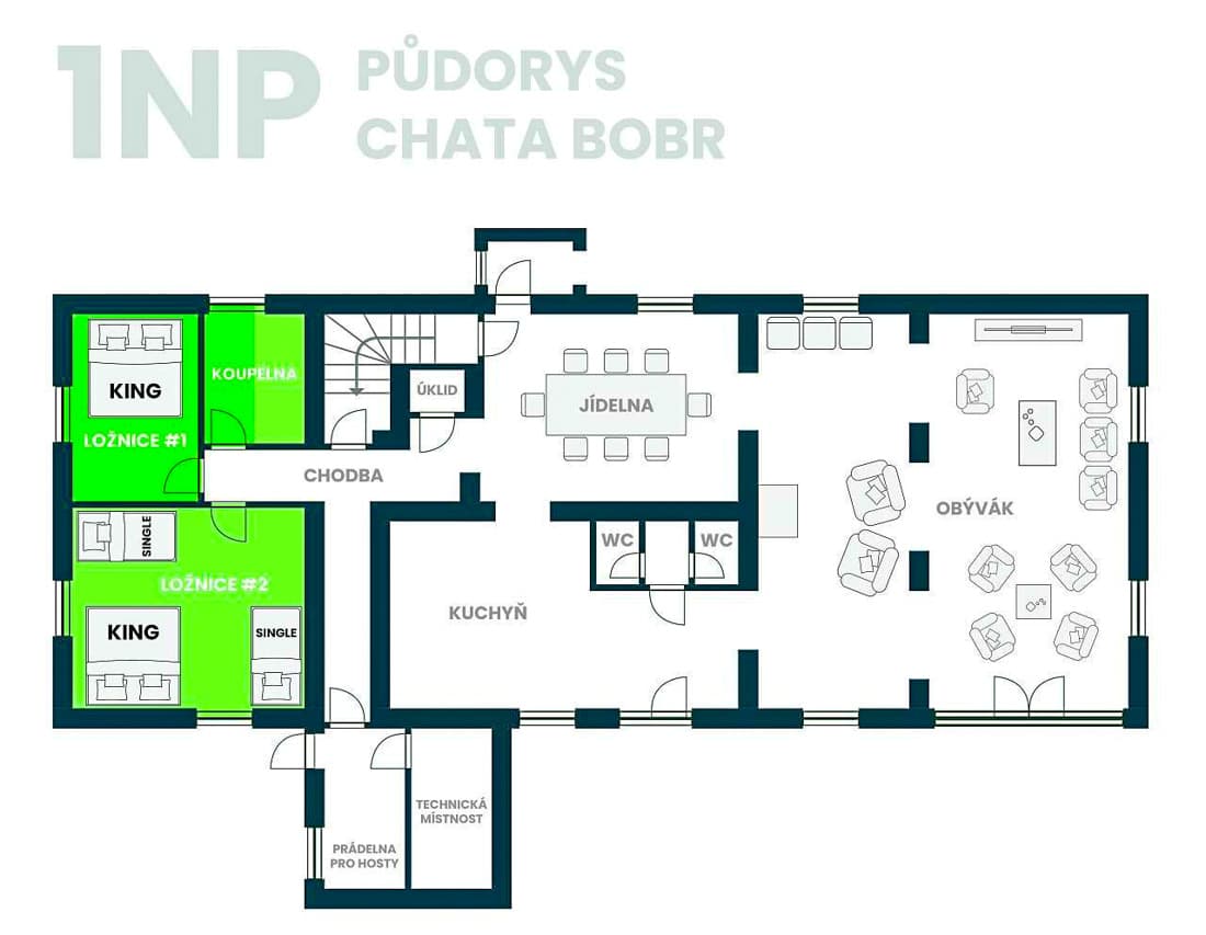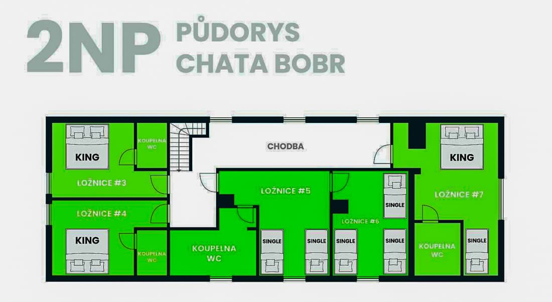 Chalupa Bobr je komfortní a nadstandardně prostorné ubytování zasazené do malebné horské krajiny v okolí Žacléře. Nabízí celkem 7 ložnic od dvou- až po čtyřlůžkové s kapacitou až 18 osob, díky čemuž je ideální volbou pro větší skupiny, rodinné oslavy i společné pobyty s přáteli. Každý si zde najde dostatek soukromí i místa pro společné chvíle.