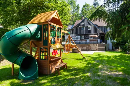 Chata Buřany se pronajímá jako celek a celková max. kapacita je 24 osob. Pronájem chaty je tak ideální pro větší party přátel a rodiny s dětmi. V chatě naleznete velkou společenskou místnost vybavenou několika stoly, televizí, krbovými kamny, výčepním pultem na sudové pivo a plně vybavenou kuchyní. Pro ubytované hosty je k dispozici celkem 5 samostatných ložnicí. V objektu jsou dvě oddělené koupelny (4 sprchy) a 3x samostatné wc. Pro děti bude pobyt na Chatě Buřany doslova za odměnu. V chalupě je pro ně připravena herna s hračkami, televizí a na zahradě na děti čeká velké dětské hřiště, kde se vyřádí. Na dospělé zde čeká wellness v podobě infrasauny, whirpool a venkovního vyhřívaného sudu s whirpool a LED osvětlením. Během letní sezóny oceníte vyhřívaný venkovní bazén a letní terasu, odkud je vidět na celou udržovanou zahradu. Parkování je možné celoročně přímo u chalupy. Celý objekt je pokrytý WIFI internetem. Poloha Chaty Buřany je balzám na duši. Oceníte okolní přírodu a možnost výletů do okolí. V zimě se na lyže můžete vydat do blízké Rokytnice nad Jizerou.