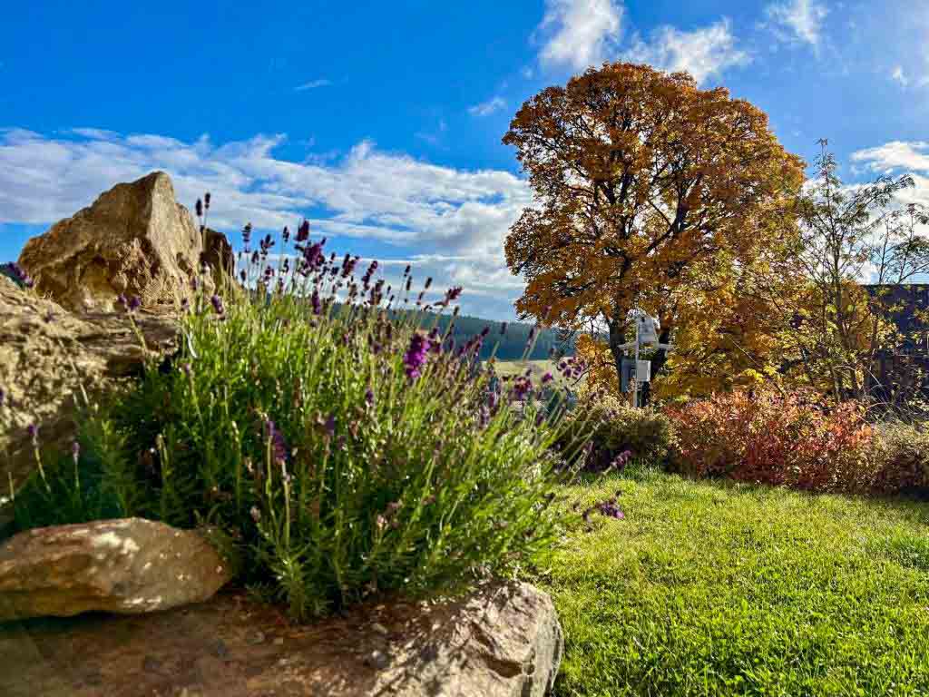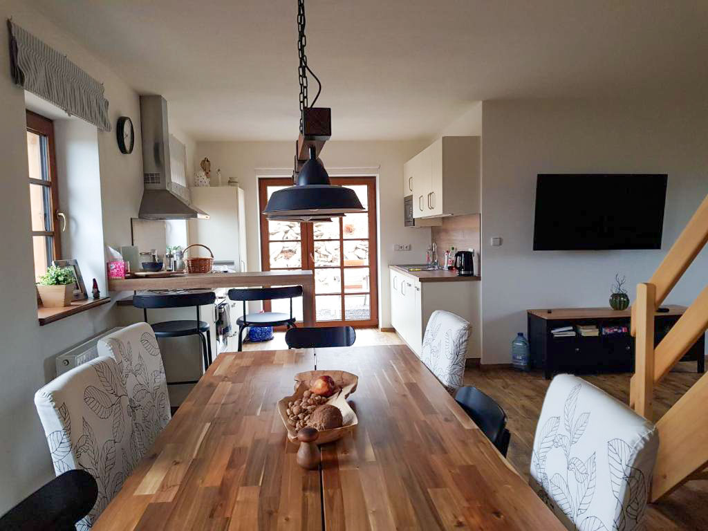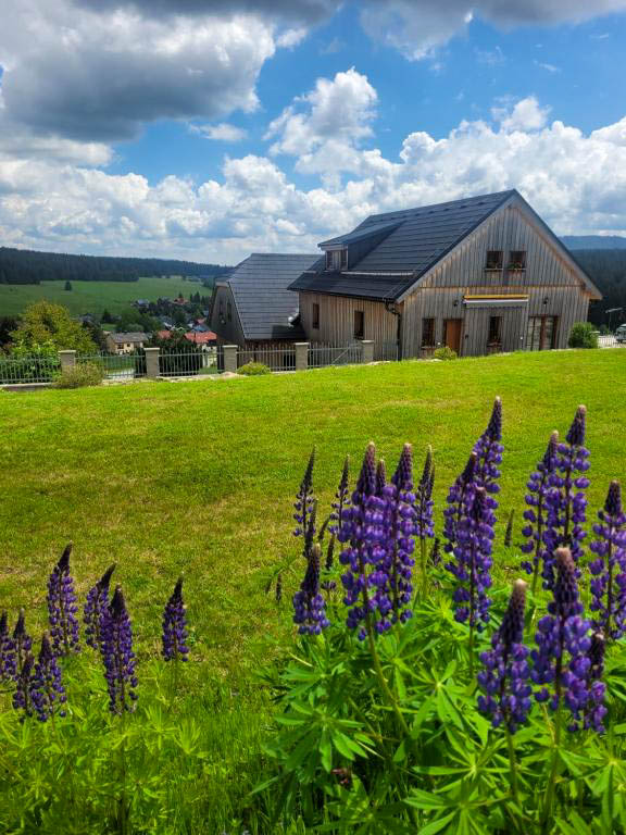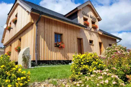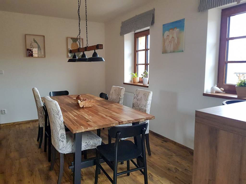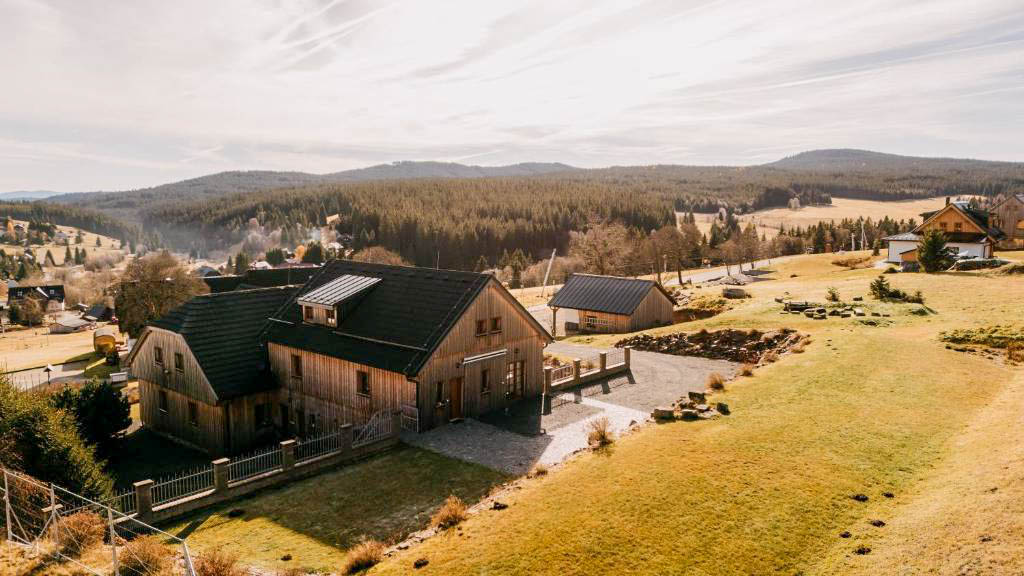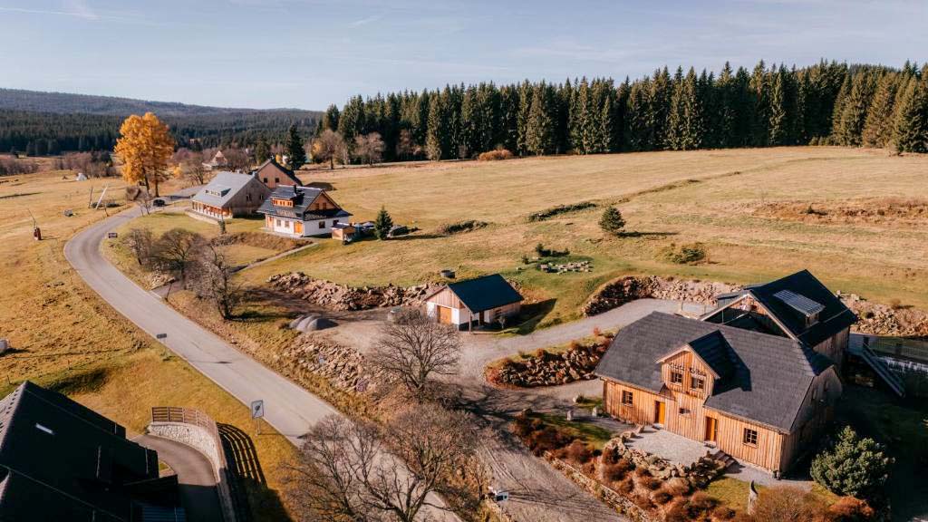Součástí chaty je také příjemné venkovní zázemí, které ocení rodiny i skupiny přátel. Hosté mohou využít venkovní posezení se zahradním nábytkem. K dispozici je rovněž zahradní gril. Pro děti je připraven venkovní prostor pro hraní s pískovištěm, skluzavkou a houpačkou. Přímo na zahradu navazuje les a louka a v zimě od chaty nastoupíte na běžeckou stopu.