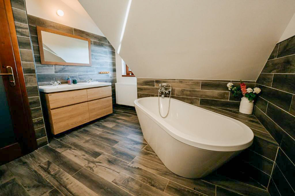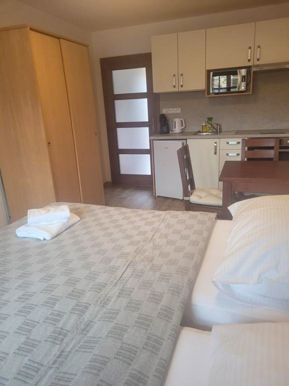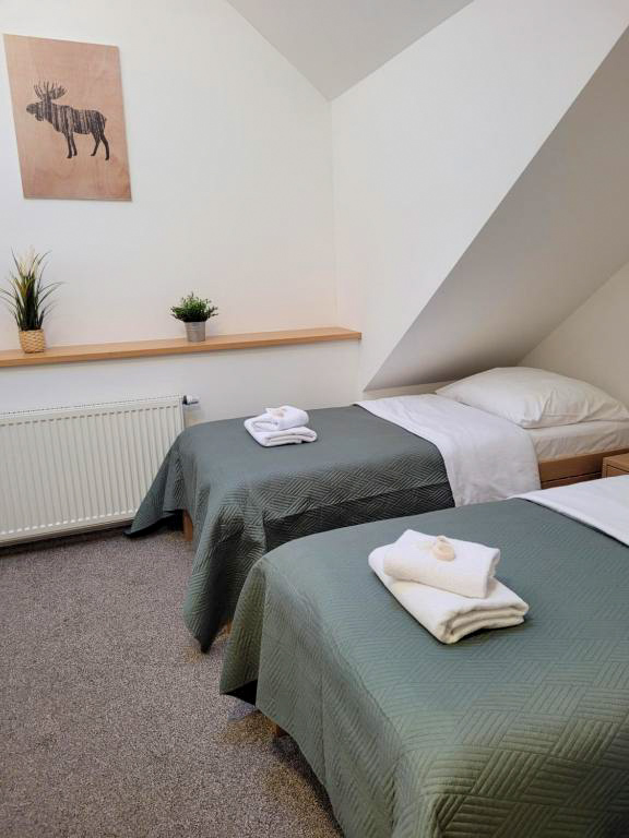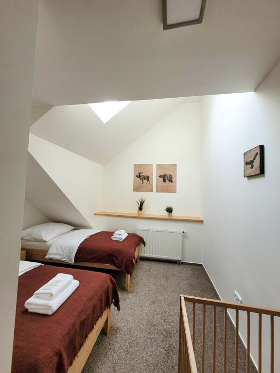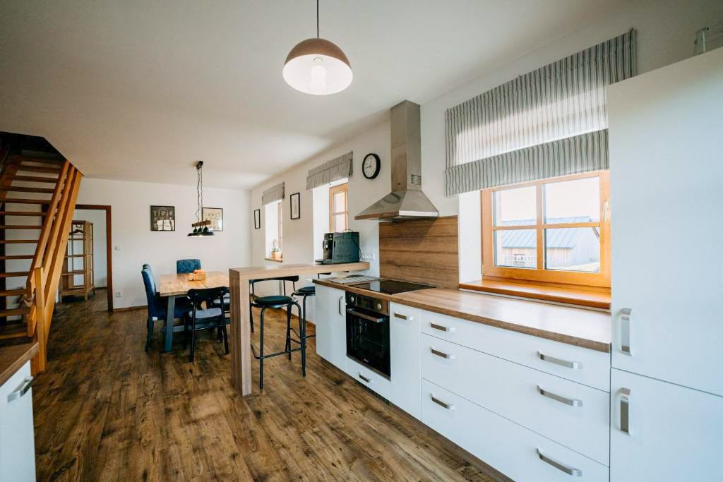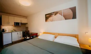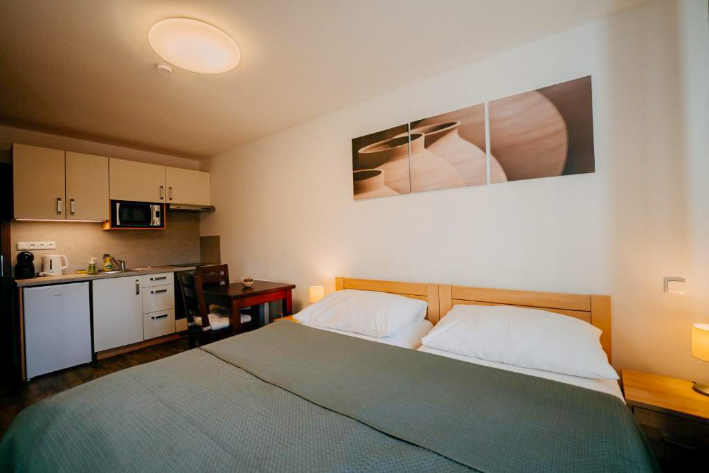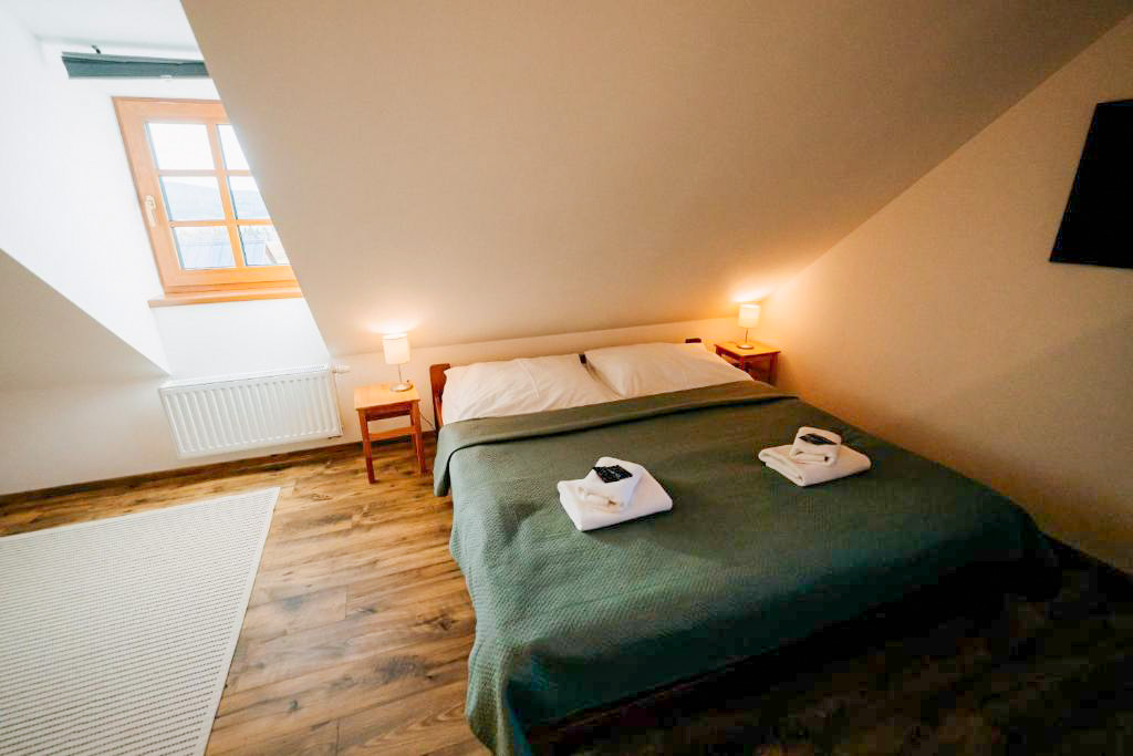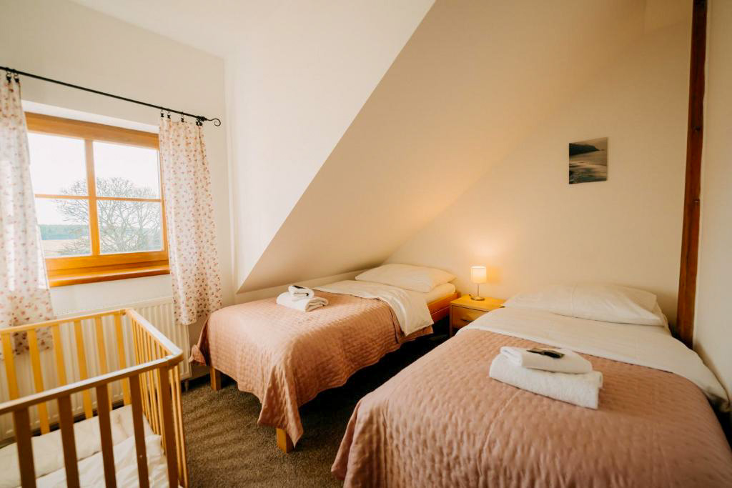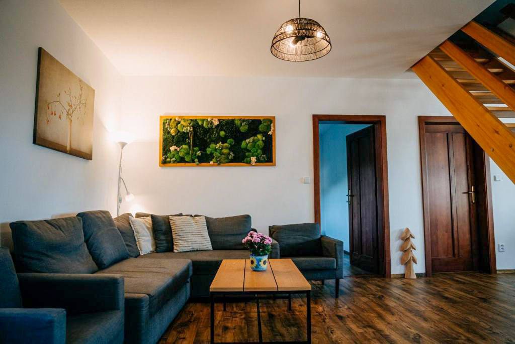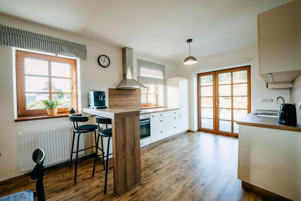 Ubytování je zajištěno v komfortně vybavených apartmánech různé velikosti, od dvoulůžkových, po pětilůžkové a jeden desetilůžkový aparmán. Všechny aparmány disponují plně vybavenou kuchyňkou (lednice, varná deska, myčka nádobí, mikrovlnná trouba, horkovzdušná trouba, kávovar i nádobí), vlastní koupelnou, televizorem a Wi-Fi v celém objektu. Každý apartmán má samostatný vstup, což hostům zajišťuje dostatek soukromí. Ručníky, ložní prádlo i základní toaletní potřeby jsou samozřejmostí. K dispozici je rovněž i finská sauna.
