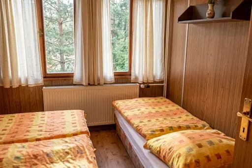 Celková kapacita chaty je až 40 lůžek, rozdělených do dvanácti prakticky zařízených ložnic s různými typy uspořádání – od dvoulůžkových až po čtyřlůžkové pokoje. K dispozici jsou manželské postele, samostatná lůžka i patrové postele, takže si zde pohodlně odpočinou rodiny, skupiny přátel i větší kolektivy. Samozřejmostí je dostatečné sociální zázemí v podobě sprch a oddělených toalet pro dámy a pány.