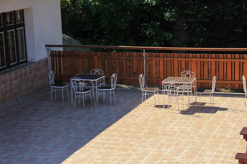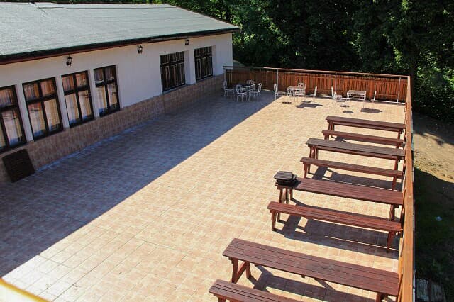 Exteriér chaty nabízí velkorysou terasu o rozloze 200 m² a přilehlou louku o velikosti jednoho hektaru, která je perfektní pro venkovní obřady, sportovní aktivity i relaxaci na čerstvém vzduchu. Samozřejmostí je bezplatné WiFi připojení v celém objektu, možnost parkování přímo u chaty a úschovna kol či lyží. Potěší i možnost ubytování s domácími mazlíčky bez poplatku.