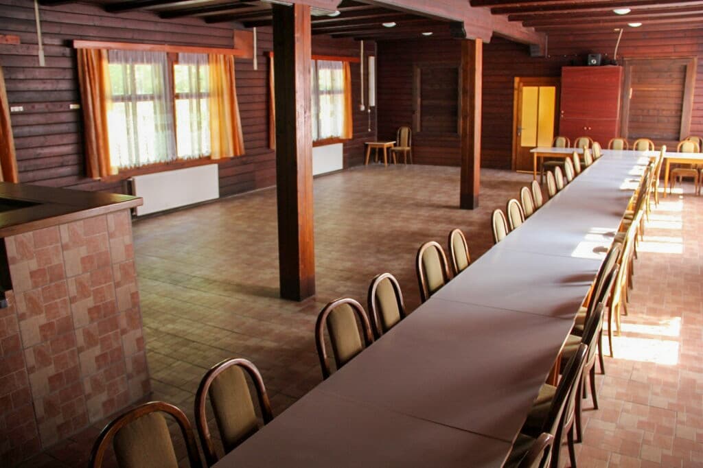 Dominantou objektu je velký společenský sál s barem a tanečním parketem, který je ideální pro večerní zábavu i slavnostní události. Kromě něj můžete využít další dvě prostorné společenské místnosti s kapacitou až 80 osob. Pro přípravu občerstvení slouží plně vybavená kuchyně s potřebnými spotřebiči a dostatek jídelních stolů pro pohodlné stolování.
