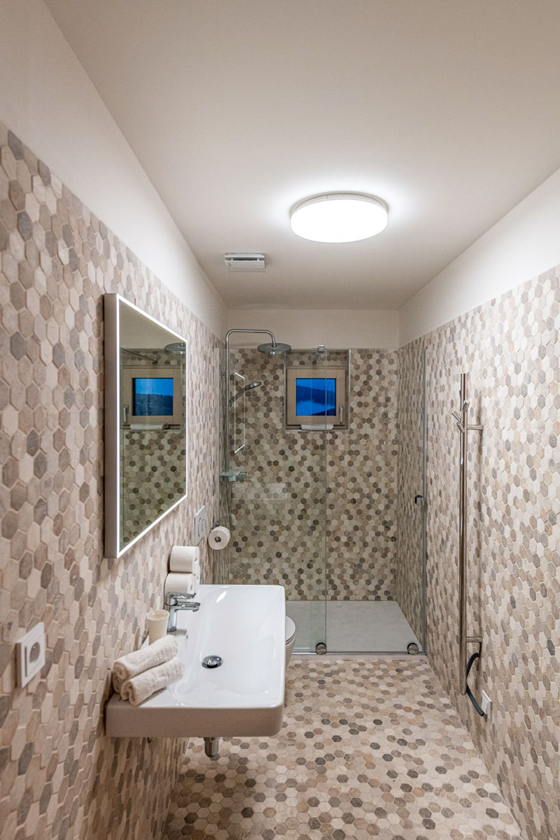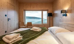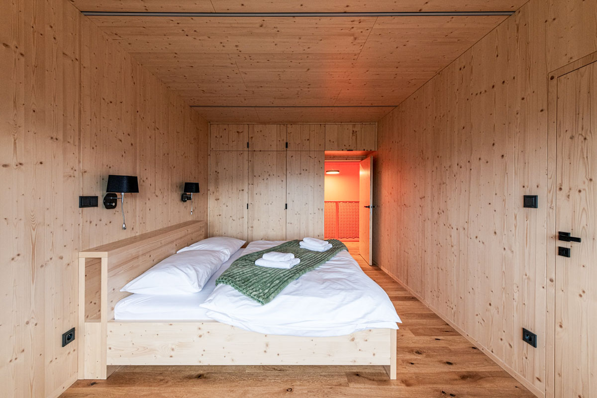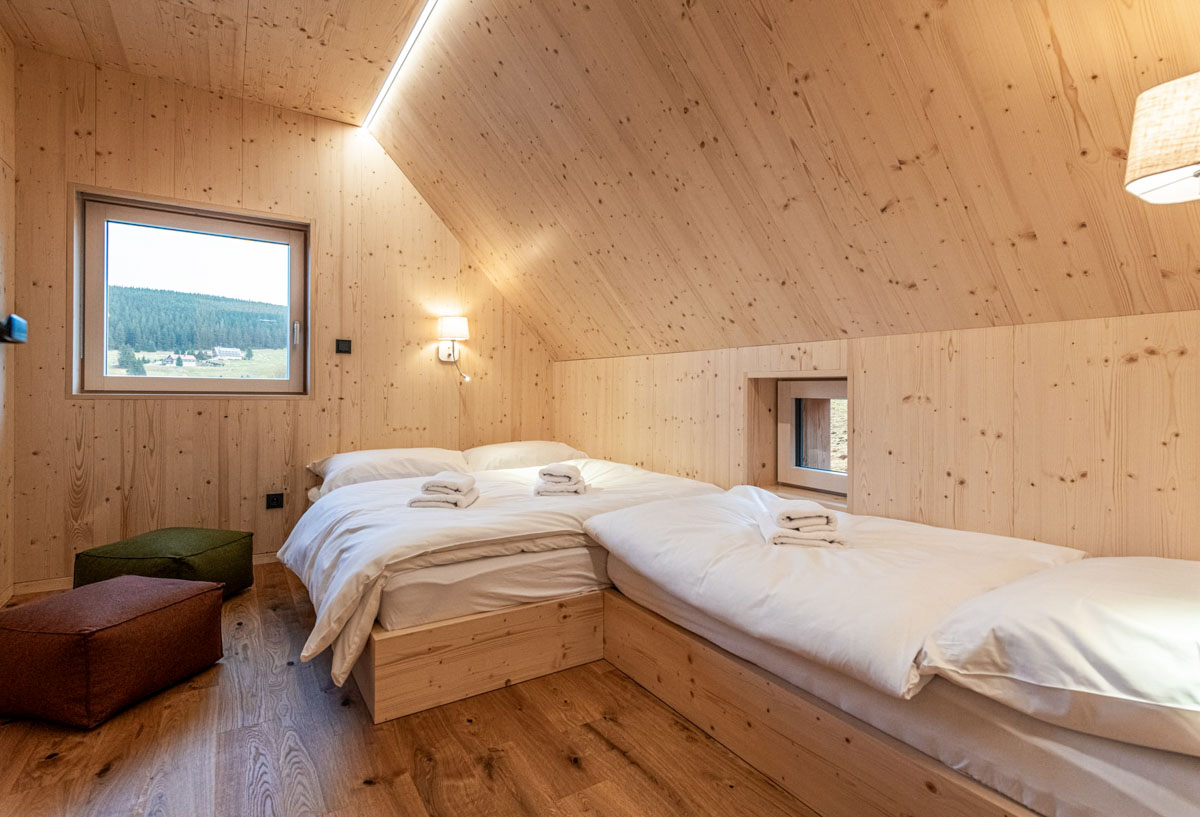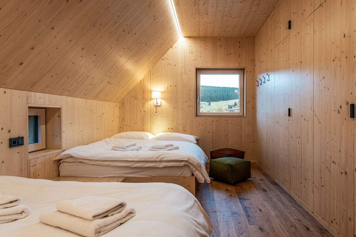 Chata se pronajímá vždy jako celek jedné skupině hostů, což zajišťuje naprosté soukromí pro celkem 18 osob. Vnitřní prostory jsou rozděleny do šesti pokojů, mezi které patří dvě komfortní master ložnice, dva třílůžkové pokoje a dva pokoje čtyřlůžkové. Pro maximální pohodlí všech ubytovaných je v objektu k dispozici pět moderně vybavených koupelen. Interiér citlivě spojuje tradiční horské prvky s moderním komfortem, což podtrhuje zejména prostorný obývací pokoj s krbem a stylový pánský salón.