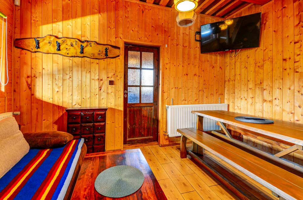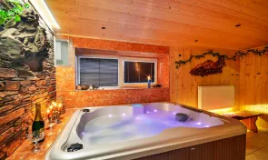 Součástí Chaty je také privátní wellness, které je přístupné pouze ubytovaným hostům po předchozí domluvě. V útulném prostoru s originální dřevořezbou mořské panny na vás čeká horká vířivka s masážními tryskami a finská sauna. Zájemcům mohou majitelé po domluvě připravit i venkovní studenou káď, která doplní plnohodnotný saunovací rituál, ostatním poslouží sprcha s nastavitelnou teplotou. Vstup do wellness není zahrnut v základní ceně ubytování a hradí se zvlášť dle aktuální dohody. Parkování je možné přímo u objektu.
