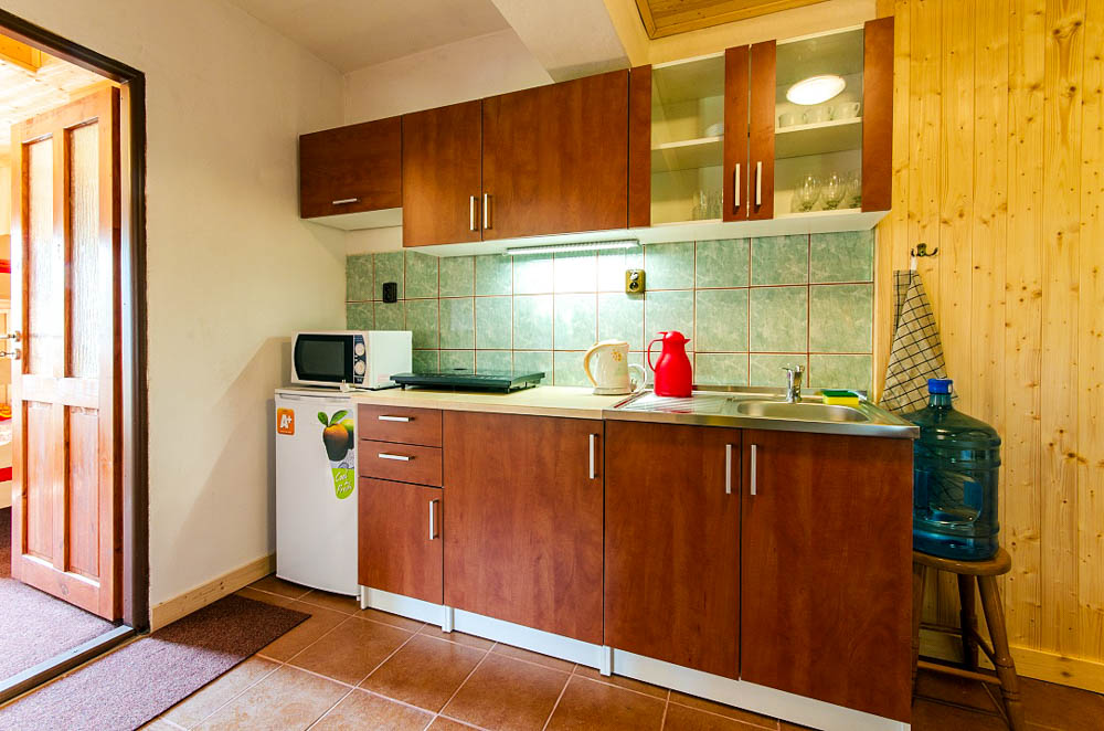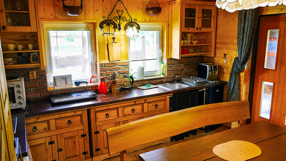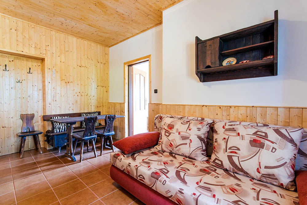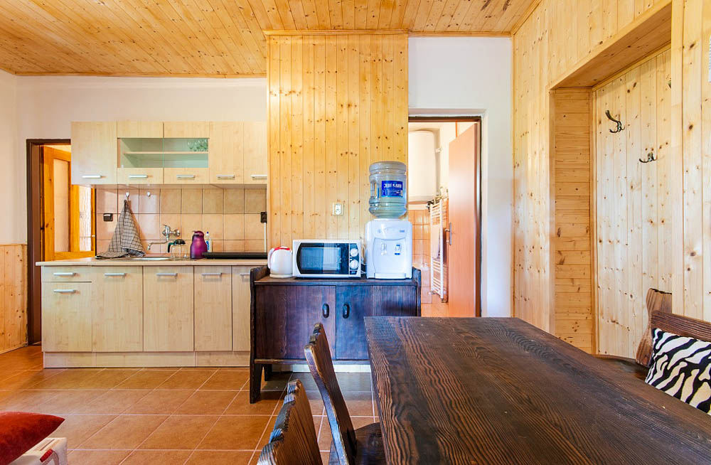 Chata Pulčiny 43 je vybavena třemi samostatnými apartmány. Dva apartmány mají dispozici pro 4–6 osob (cca 50 m²) a třetí apartmán je kapacitně srovnatelný s prvními dvěma dohromady, takže celková kapacita objektu dosahuje až 24 lůžek, avšak v chatě se může najednout ubytovat nanejvýše 8 osob. Každý apartmán má samostatný vchod pro maximální soukromí, vlastní koupelnu se sprchovým koutem nebo vanou a toaletou a plně vybavenou kuchyni s lednicí, mikrovlnnou troubou, rychlovarnou konvicí, varnou deskou či indukčním vařičem a jídelním posezením. V ložnicích najdete manželské postele, patrové postele i rozkládací gauče, které slouží jako plnohodnotná lůžka pro další hosty, takže ubytování se dá dobře přizpůsobit rodinám s dětmi i skupinám přátel. V obývací části každého apartmánu nechybí gaučové posezení a televizor, samozřejmostí je Wi-Fi připojení v celém objektu. K domu náleží několik teras s venkovním posezením, krby, možnost otevřeného ohniště a z části objektu je vidět přímo na dětské hřiště, kde se mohou vyřádit nejmenší hosté.