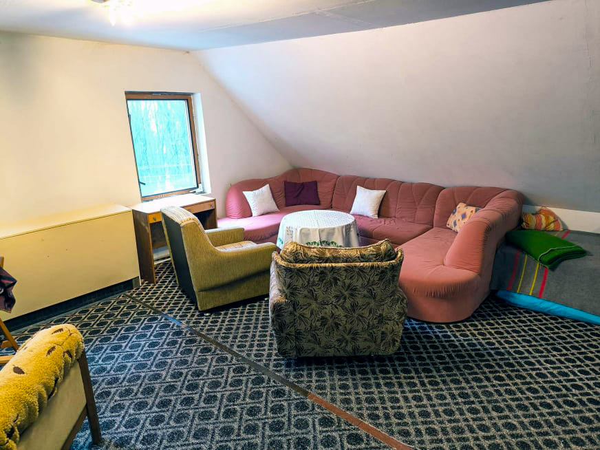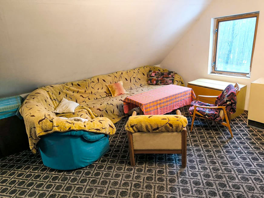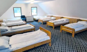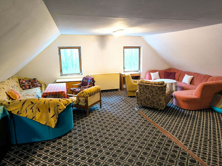V podkroví chaty je víceúčelový prostor, který lze využít jako tělocvičnu, hernu nebo ubytování pro větší skupiny. Ubytování je vytápěné akumulačními kamny, s celodenním přívodem teplé vody, což umožňuje pohodlný pobyt po celý rok. Parkování je možné přímo u objektu pro až 10 aut.