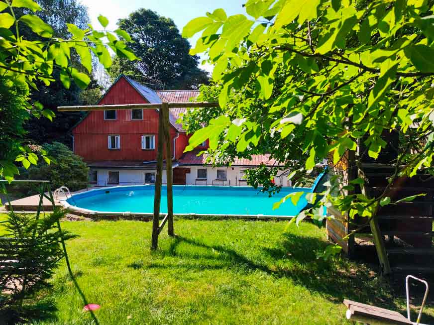 V letní sezóně se kapacita rozšiřuje o šest nevytápěných chatek s elektřinou, z nichž každá nabízí pět lůžek. Areál je rozlehlý, oplocený a nabízí široké možnosti vyžití: venkovní bazén (11,5 × 5,5 m), volejbalové hřiště, trampolíny, houpačky, pískoviště, ohniště i gril. Děti se zde mohou volně pohybovat a hrát, zatímco dospělí si užívají klidu a posezení na zahradě.