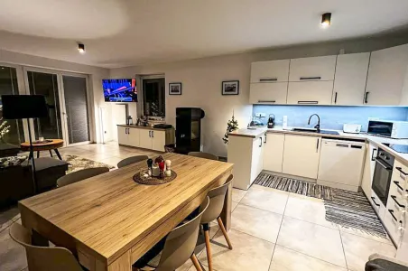 Moderní bungalov v Lipně nad Vltavou nabízí komfortní ubytování až pro 6 osob v samostatném objektu s naprostým soukromím. Součástí interiéru jsou dvě ložnice, dvě sprchy, samostatné WC, prostorný obývací pokoj s přímým vstupem na terasu a kompletně vybavený kuchyňský kout. K dispozici je také infrasauna, kterou zejména oceníte po sportu či výletech. Vytápění zajišťují infrapanely a krbová kamna - v zimě je připraveno balení briket v ceně.