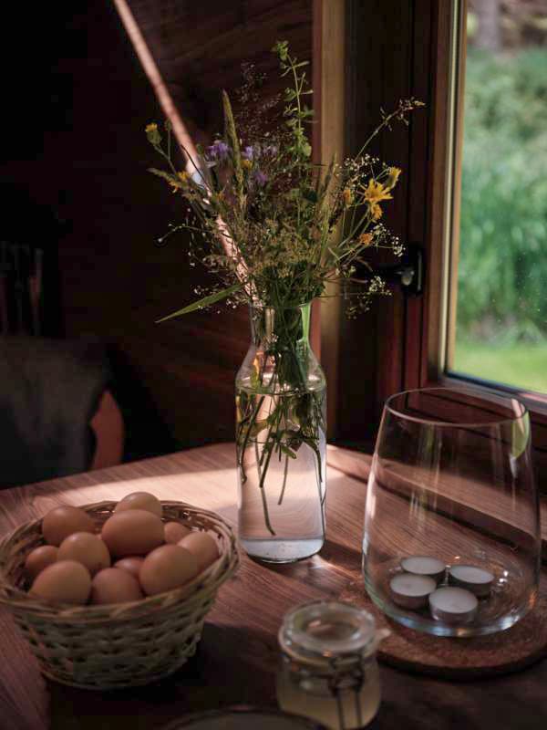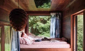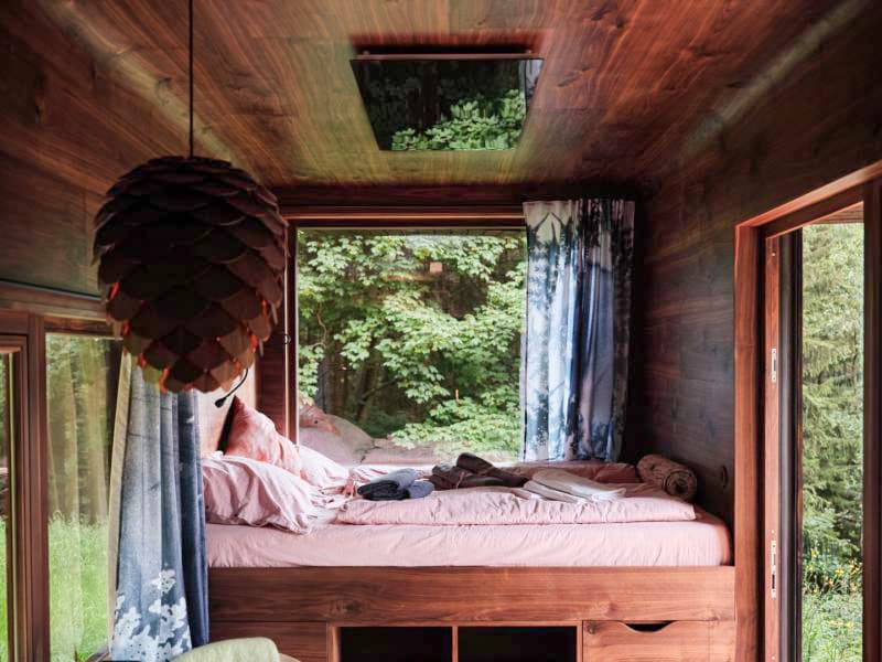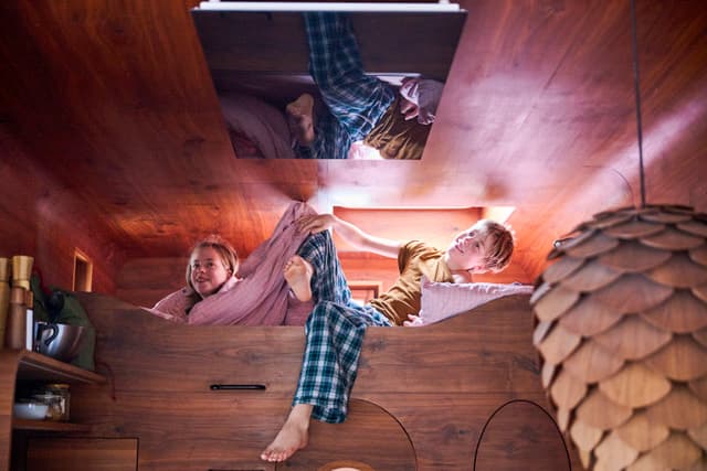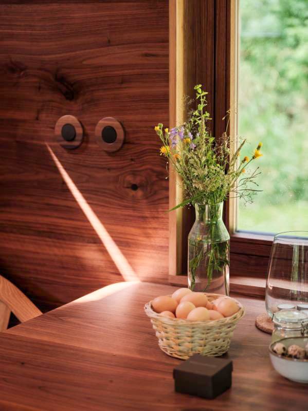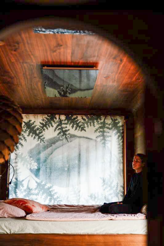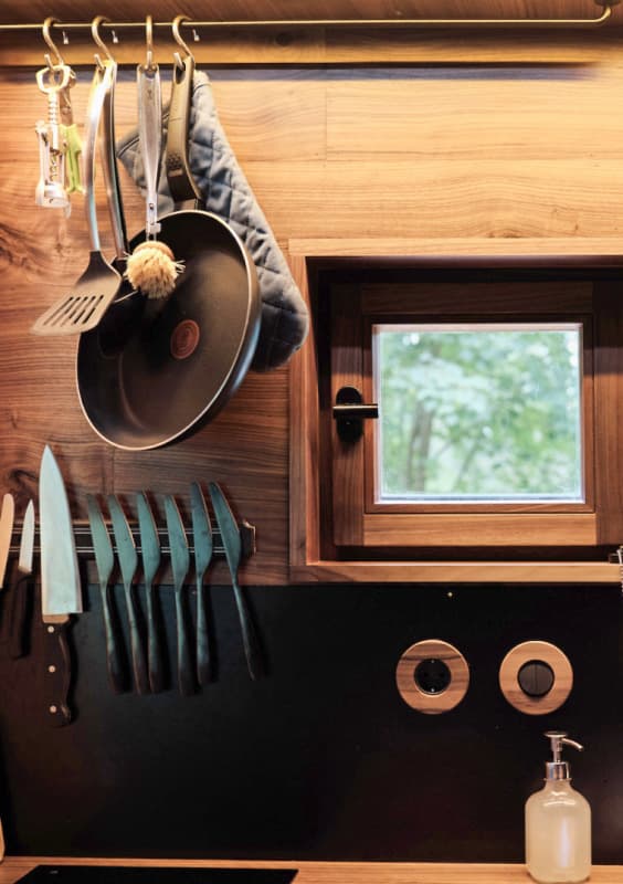 Ubytování nabízí stylová chata na kolečkách, navržená především pro páry, ale s dostatkem prostoru až pro čtyři hosty – a bez problémů přivítá i rodinu s dětmi. Interiér spojuje komfort s jednoduchostí: pohodlná postel s nadýchanými peřinami, plně vybavená kuchyň, jídelní kout i koupelna se sprchou a toaletou. Nechybí ani drobnosti pro radost – od kvalitní arabské kávy a japonského čaje Oolong až po sicilský olivový olej nebo nepálskou sůl.