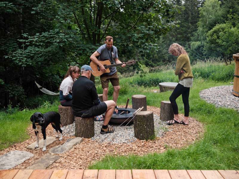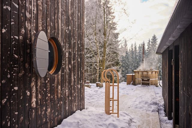 Venku na vás čeká jedlový sud pro horké koupele pod širým nebem, finská sauna, gril i houpací síť – ideální kombinace pro pomalé večery a dokonalý relax. V lednici můžete (za poplatek) najít vybraná vína, pivo nebo drobné pochutiny, které podtrhnou atmosféru vašeho pobytu.