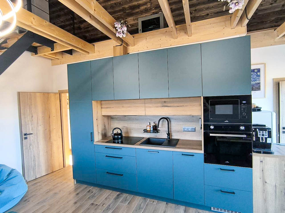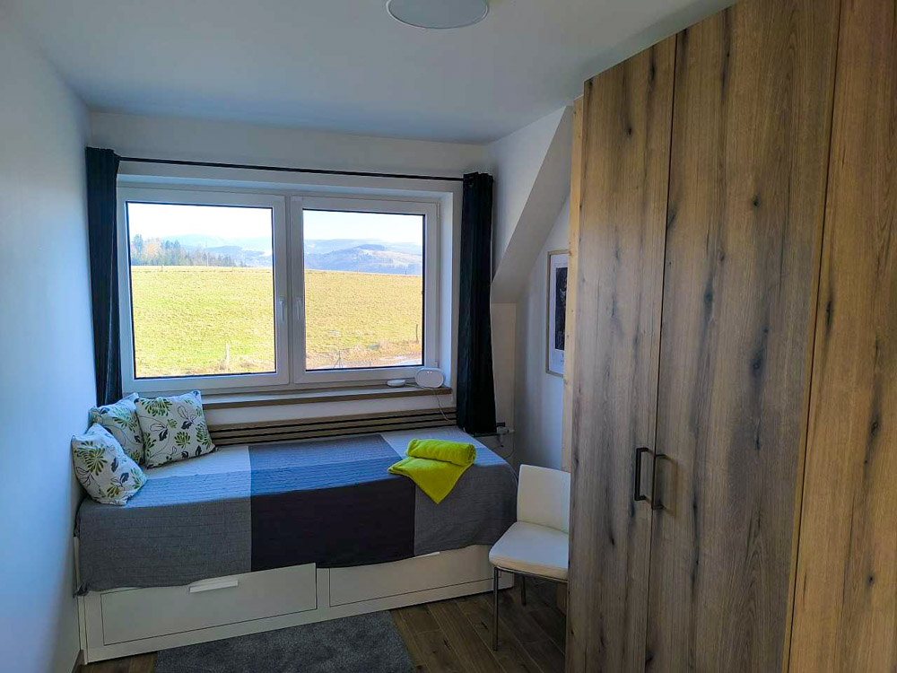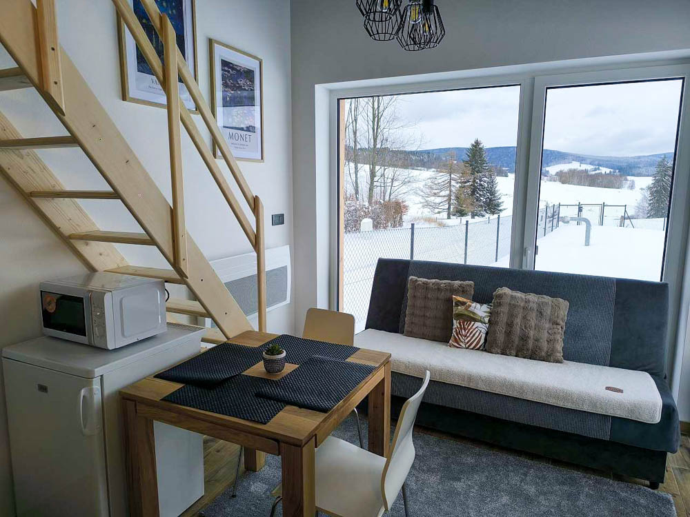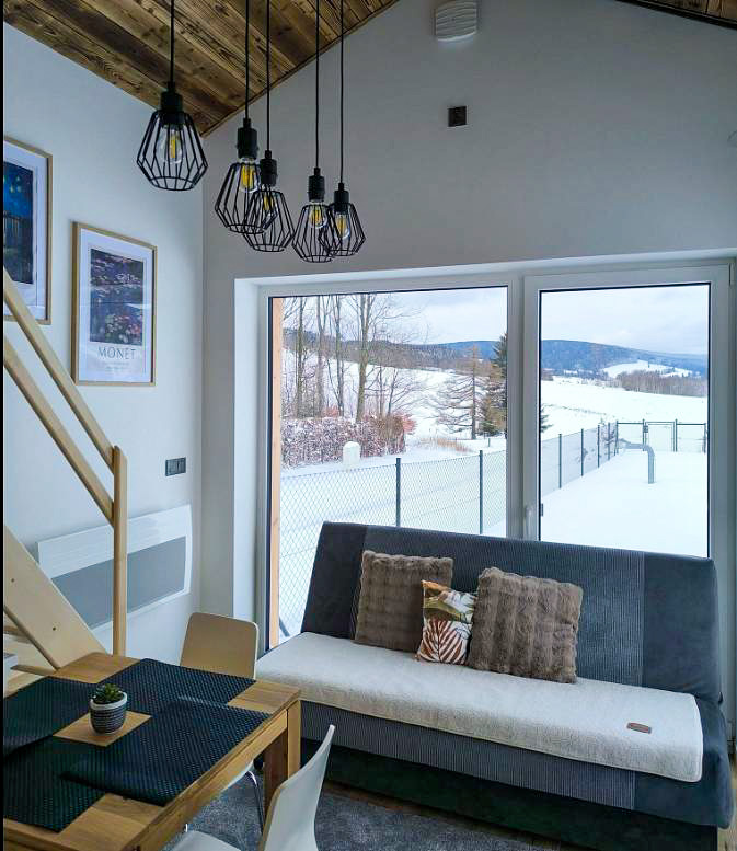 Interiér apartmánu je zařízen v příjemném horském stylu s důrazem na světlo, dřevo a prostor. Velká okna poskytují výhledy na okolní louky, pastviny a sjezdovky – Kunčice, Paprsek, Ramzová a Kraličák. V zimě potěší elektrické podlahové vytápění a vysoušeče lyžáků, v létě zase přímý vstup na zahradu.