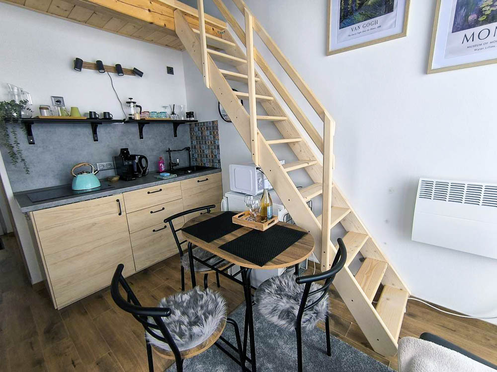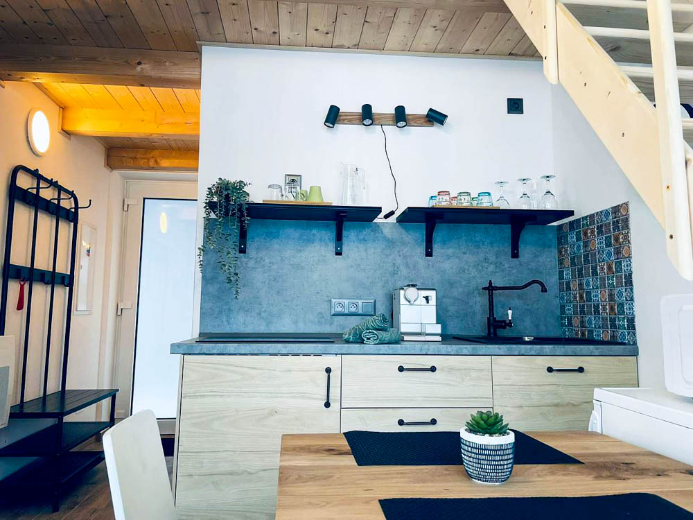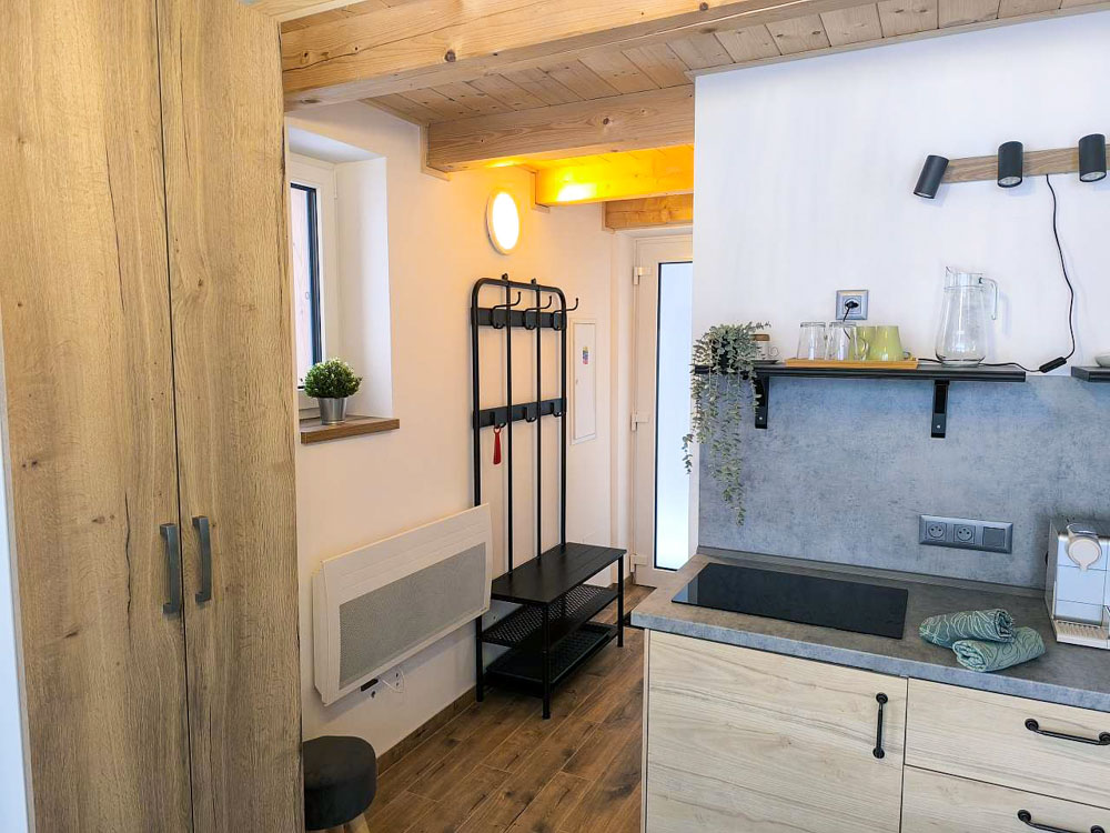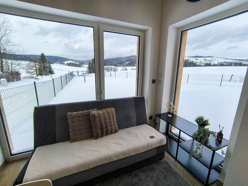 Vedle apartmánu stojí Tiny House Stříbrnice, samostatný domek pro maximálně 3 osoby. Nabízí překvapivě prostorný interiér (25 m² + 10 m² spací podkroví), kde nechybí moderní kuchyňka s lednicí, mikrovlnkou, indukční deskou, kávovarem Illy, chytrá TV, Wi-Fi a koupelna se sprchovým koutem a toaletou. V podkroví se nachází útulný spací prostor s velkou matrací 2 × 2 m. Tiny House je ideální pro páry nebo menší skupinu, která hledá souromí uprostřed přírody – jen 200 metrů od sjezdovky Ski areálu Kraličák.