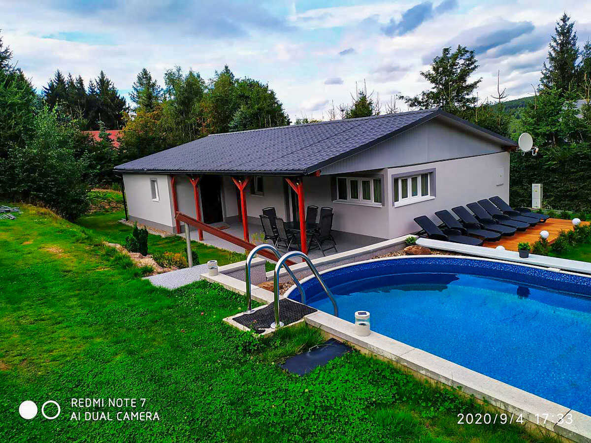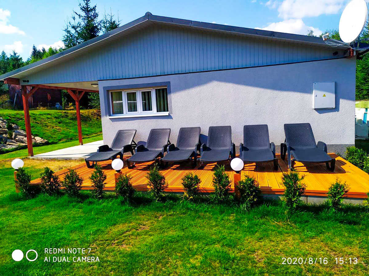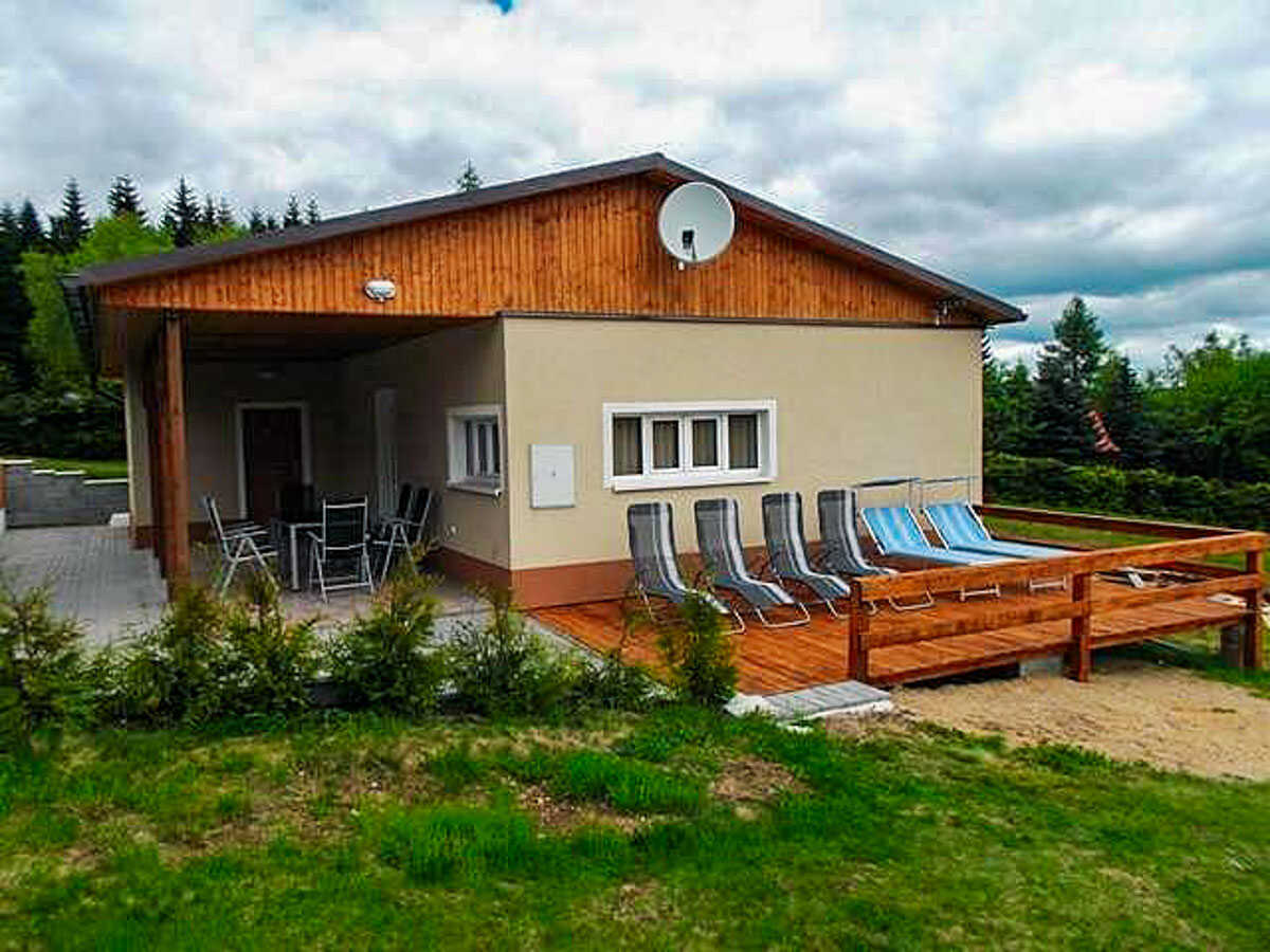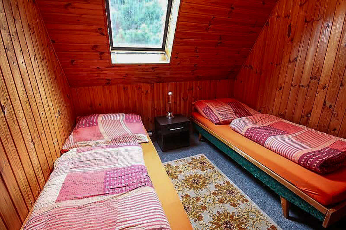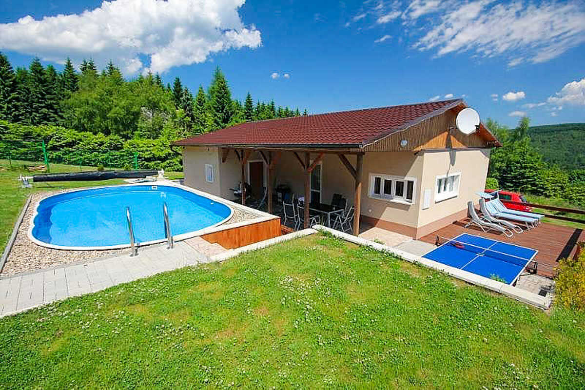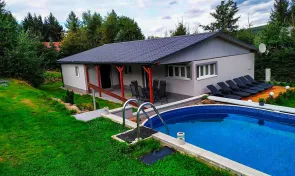 Tři ložnice v patře pojmou až sedm osob; jedna z nich má i přistýlku. Chata má vlastní koupelnu s pračkou, sušičkou a WC. Hosté ocení především venkovní vířivku, finskou saunu, bazén, stolní tenis a pergolu s krbem a ohništěm. K dispozici jsou také elektronické šipky, takže o zábavu je postaráno i za horšího počasí. Parkování je možné přímo u chaty, přístupové cesty jsou celoročně udržované.