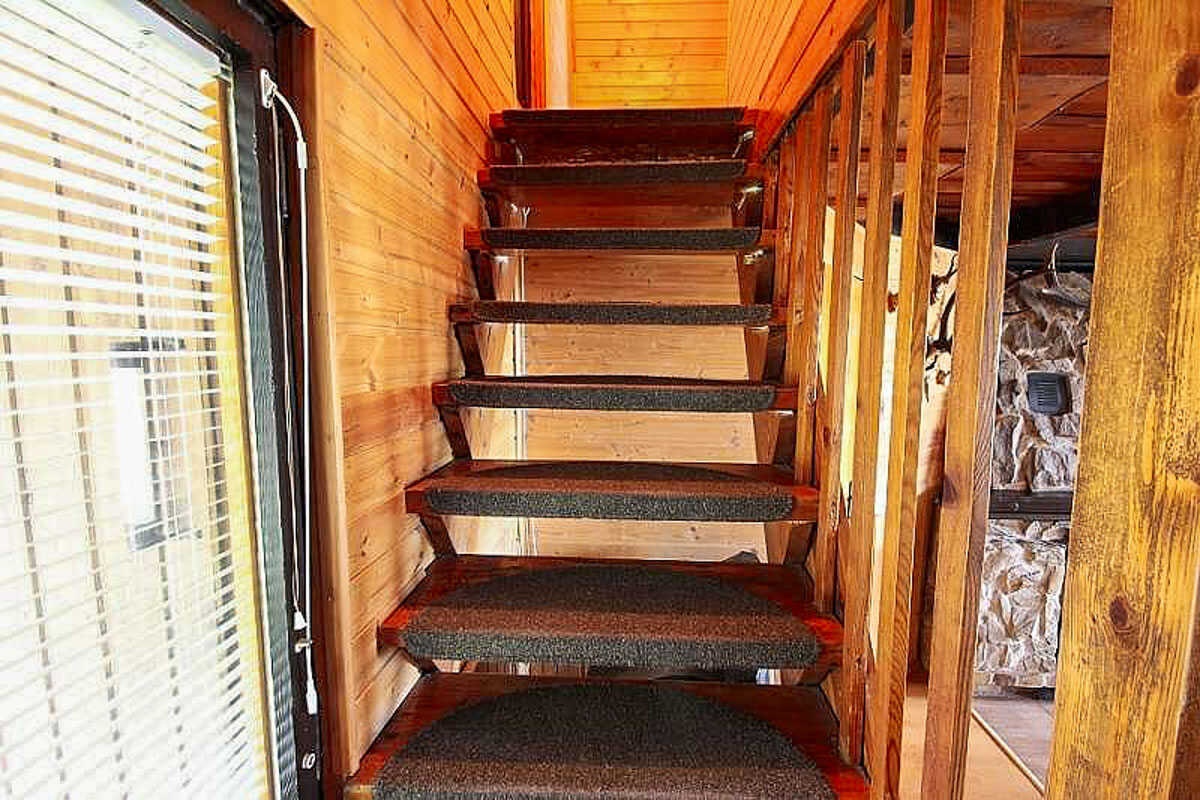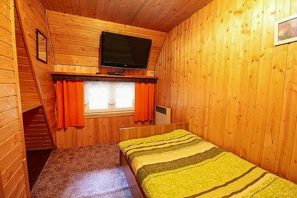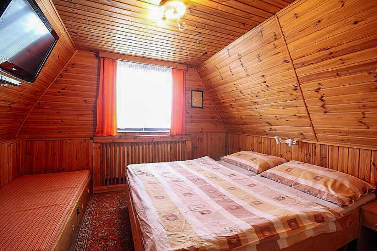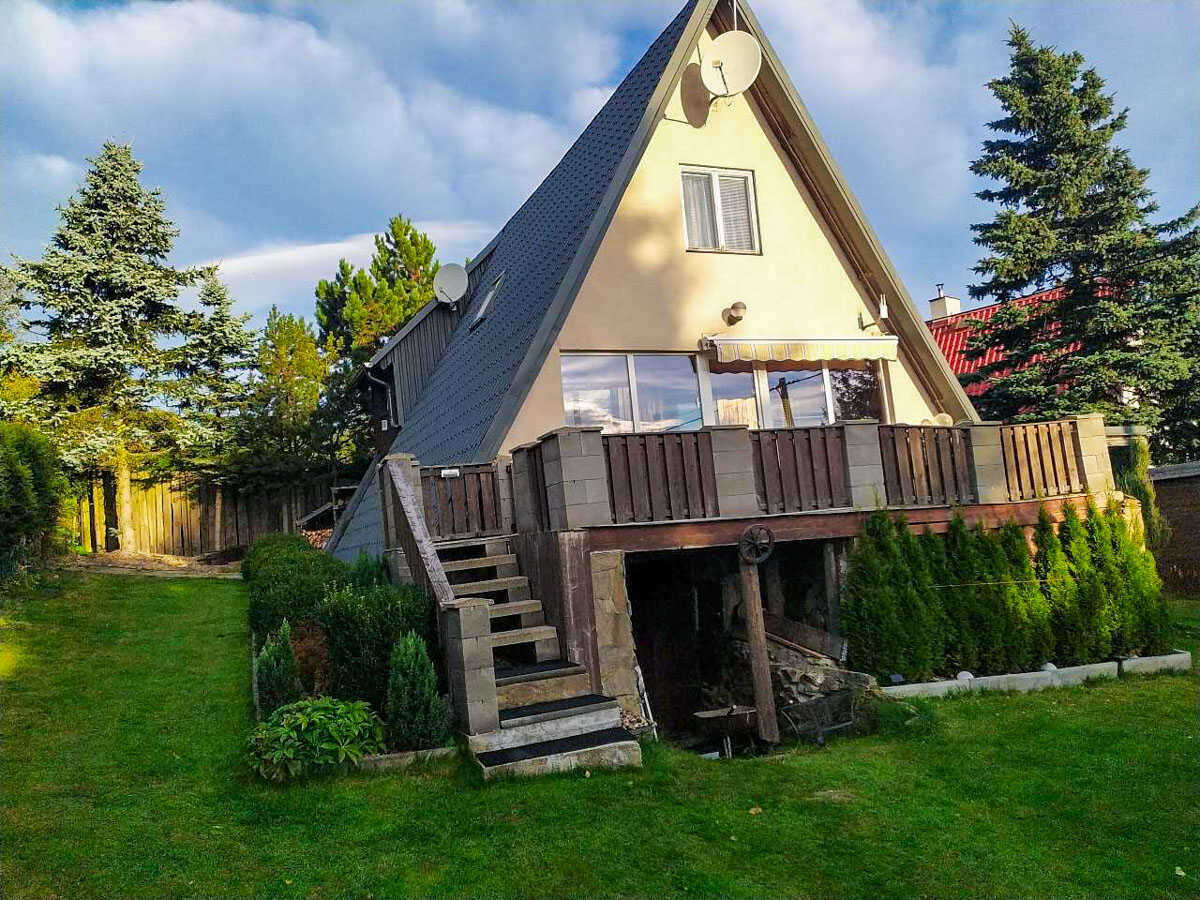 První z chat působí jako útulný rodinný dům s důrazem na pohodlí a přátelskou atmosféru. V přízemí se nachází obývací pokoj s krbem, televizí a jídelním koutem, kuchyň s moderními spotřebiči (myčka, mikrovlnka, lednička, toustovač) a zastřešená terasa s markýzou.