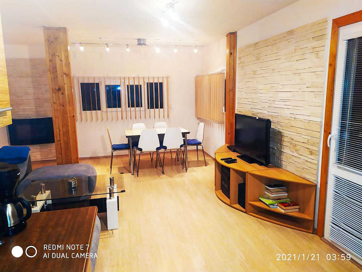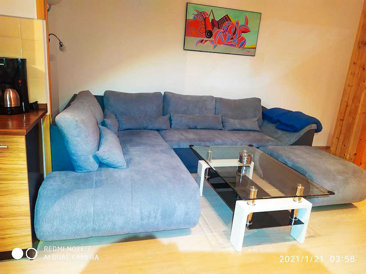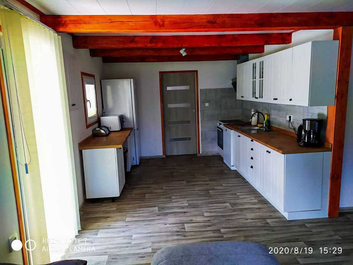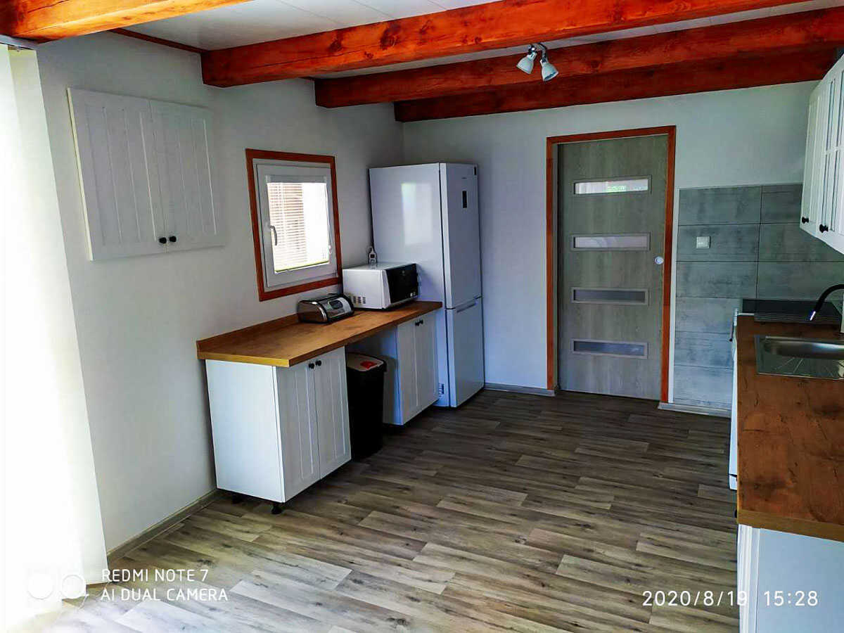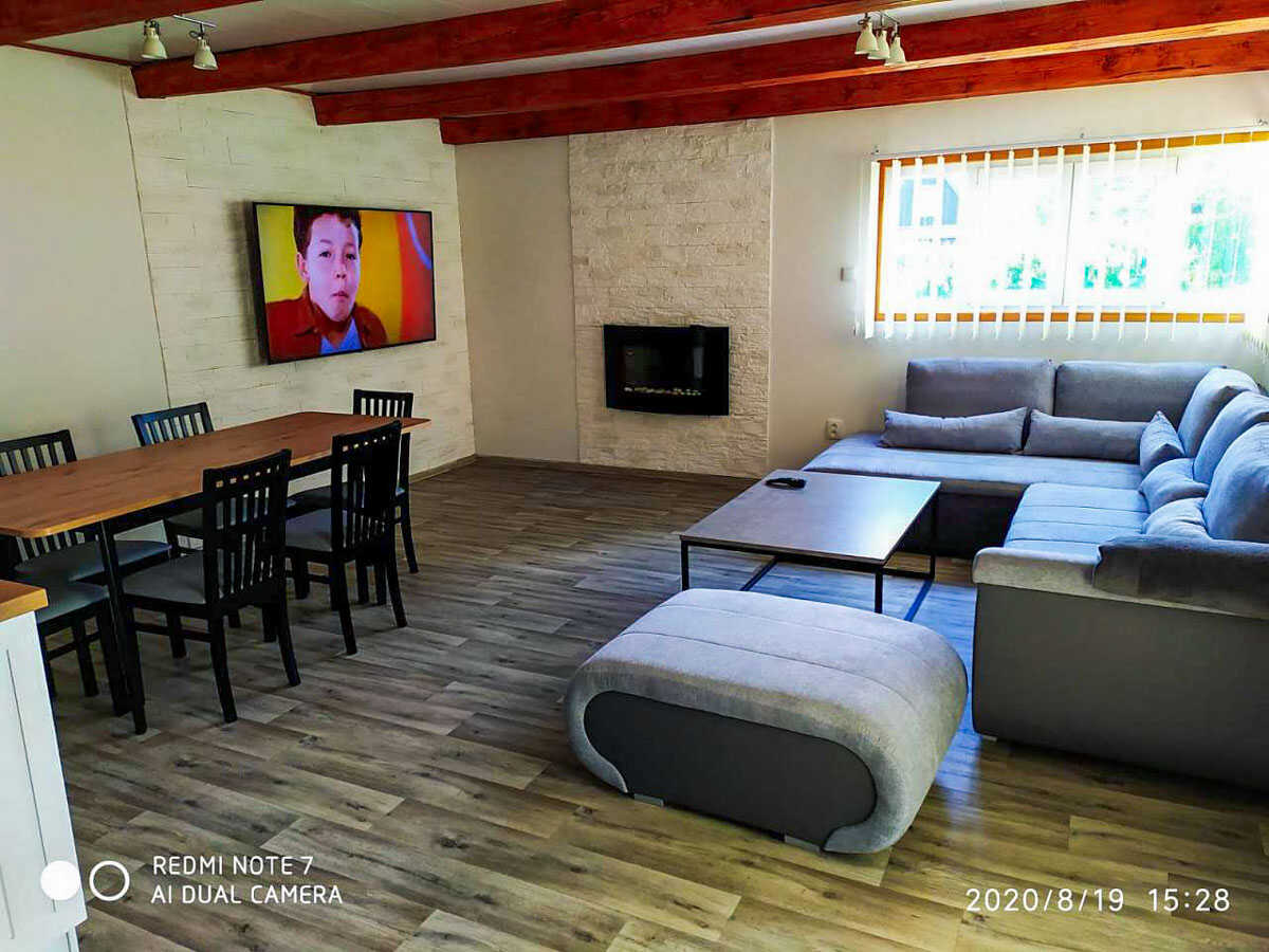 Tato chata nabízí skutečně bohaté vybavení a je ideální pro hosty, kteří chtějí spojit horské prostředí s maximálním pohodlím. V přízemí se nachází útulná společenská místnost s krbem, sedací soupravou, satelitní TV a Wi-Fi připojením. Na ni navazuje kuchyň s veškerým vybavením – elektrický sporák, myčka, mikrovlnka, lednice i překapávač na kávu.