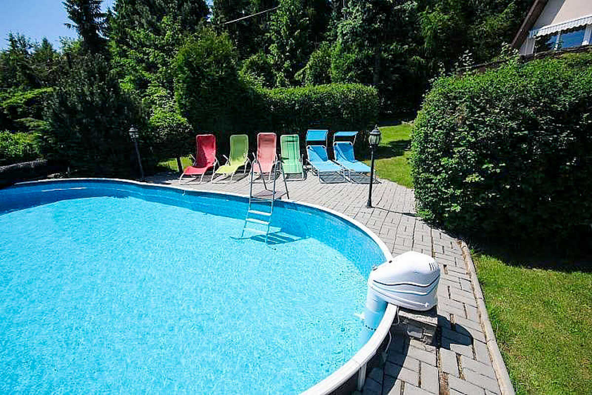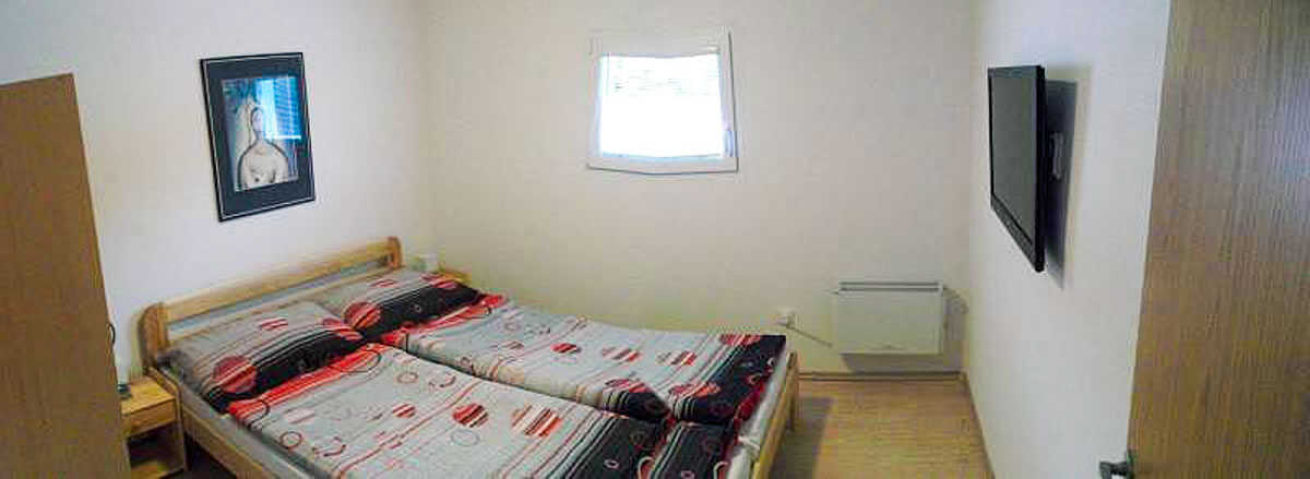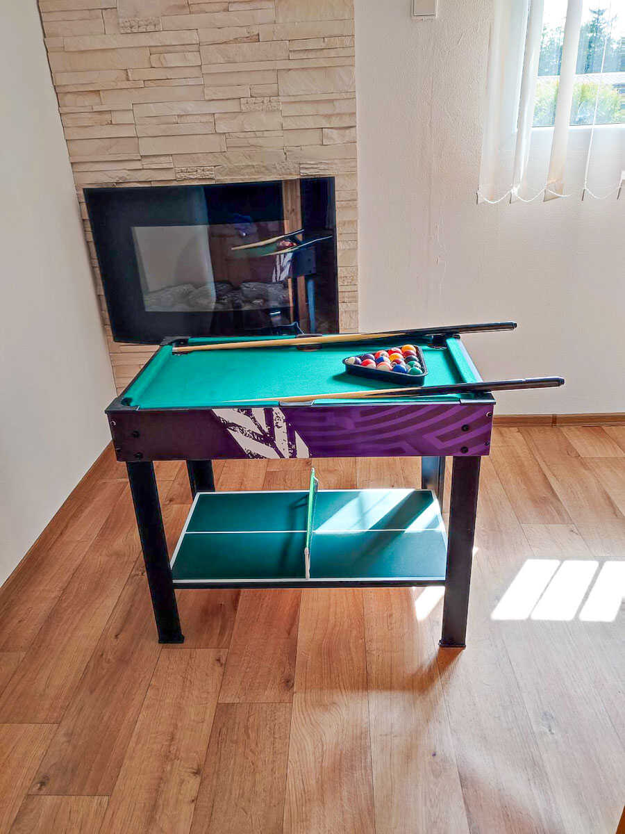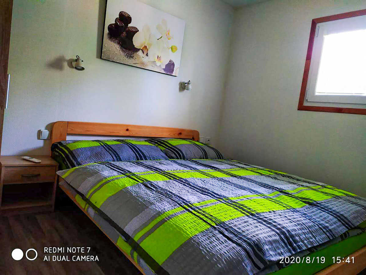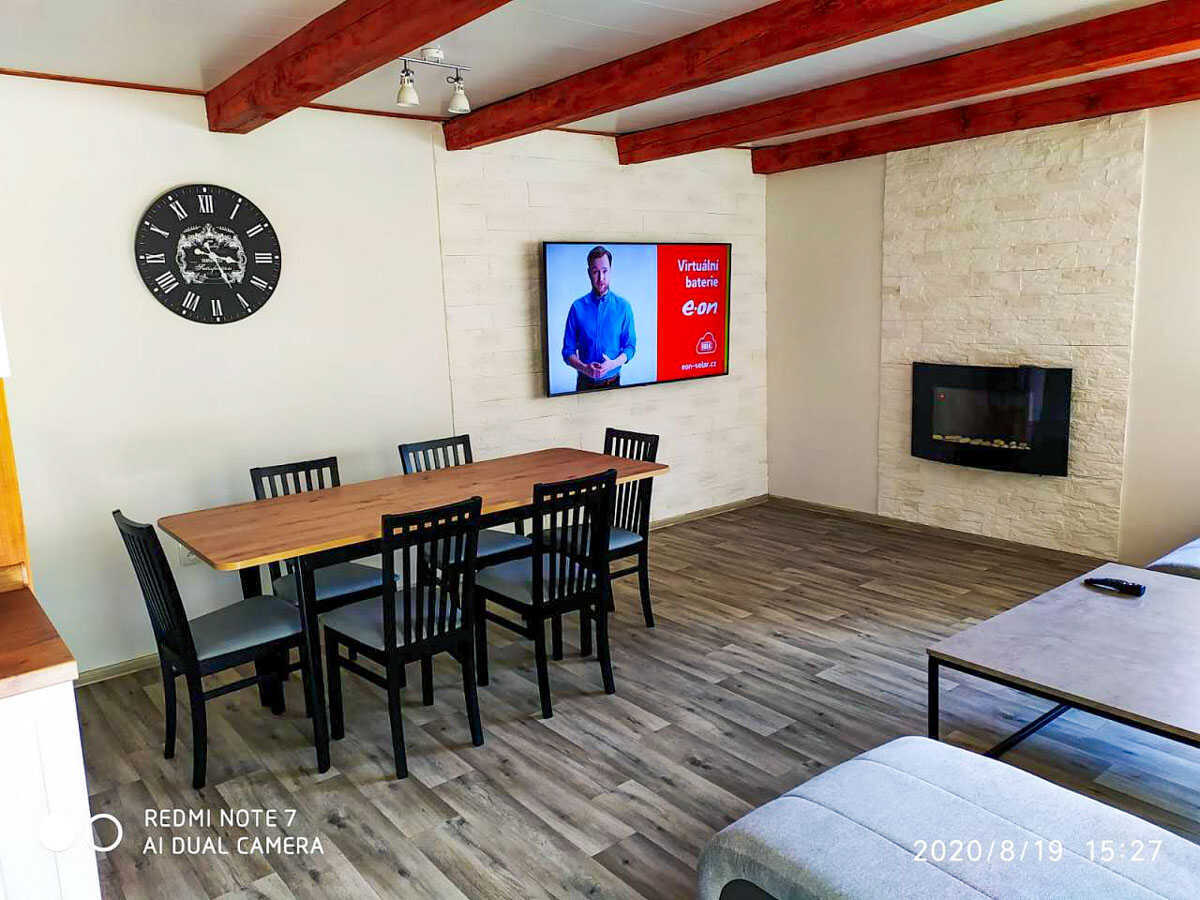 V patře jsou tři ložnice, každá pro dvě osoby a s vlastní TV. Koupelna je moderní, vybavená sprchovým boxem, pračkou i sušičkou. Pro odpočinek poslouží wellness koutek s vířivkou, infrasaunou, masážním křeslem a fitness zónou (rotoped, posilovací stroj). Venku na hosty čeká vyhřívaný bazén (8 × 4 m), zastřešená terasa, gril, pingpongový stůl a ohniště. Nechybí ani dvě garáže a prostor pro parkování.