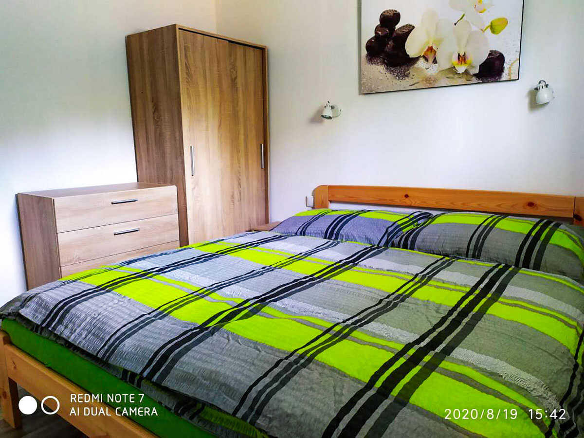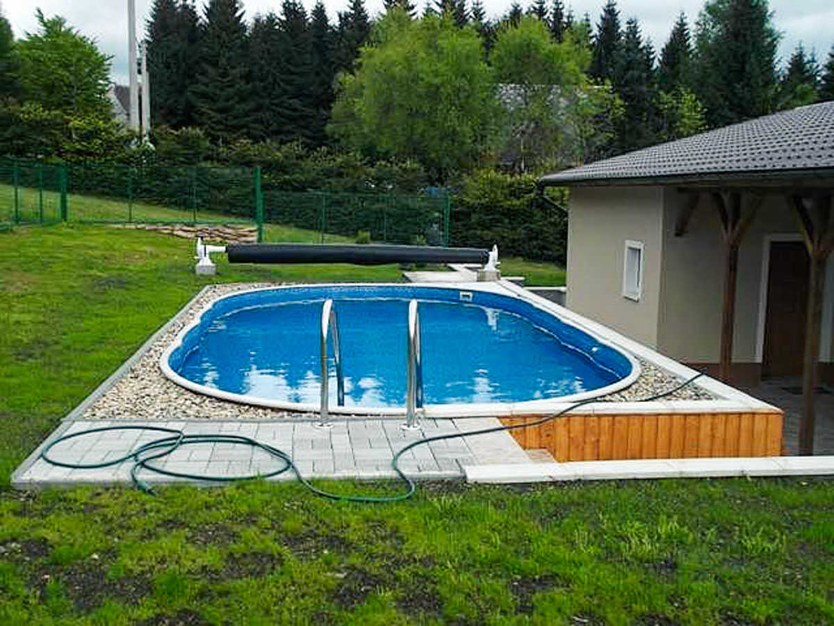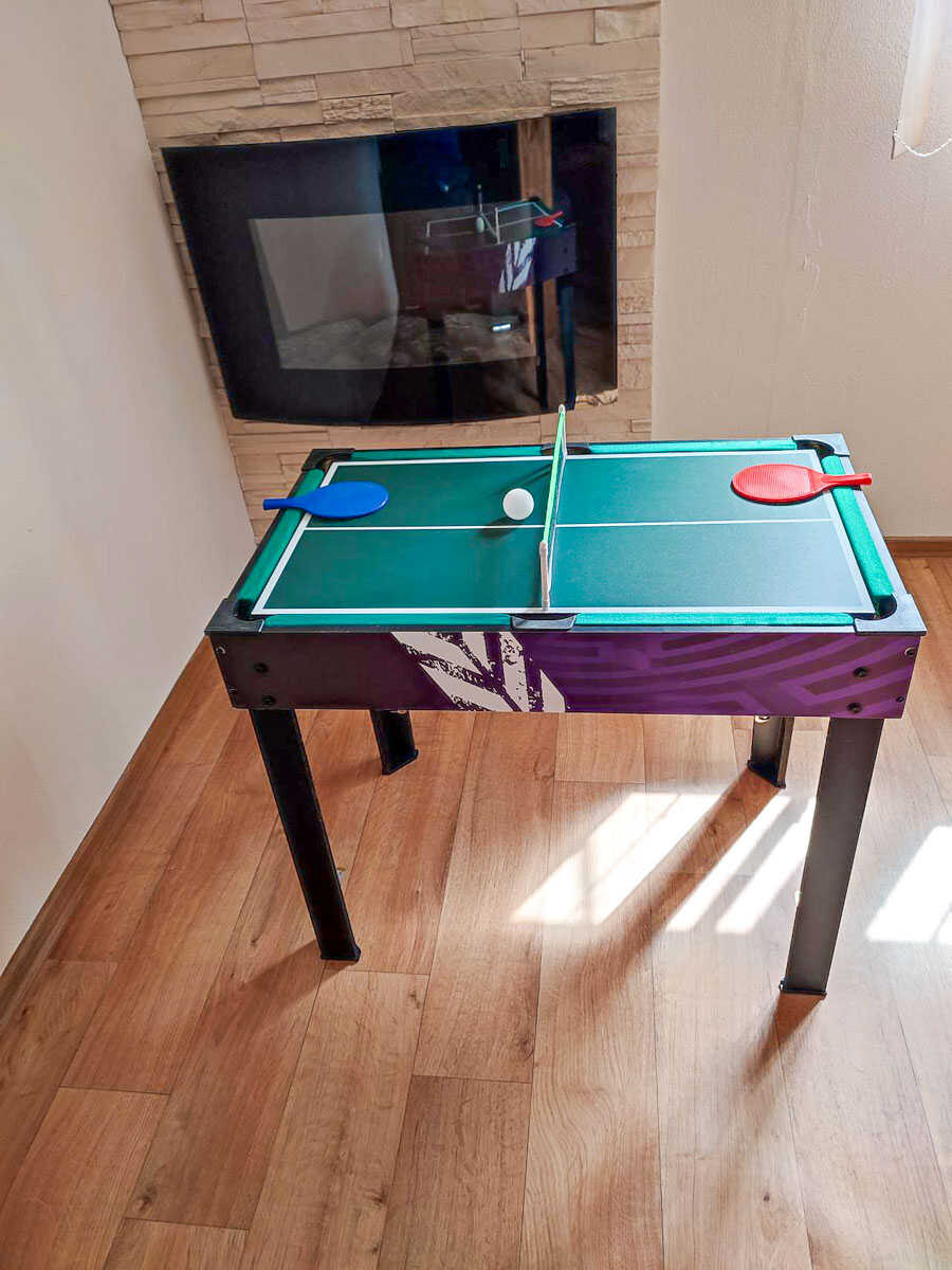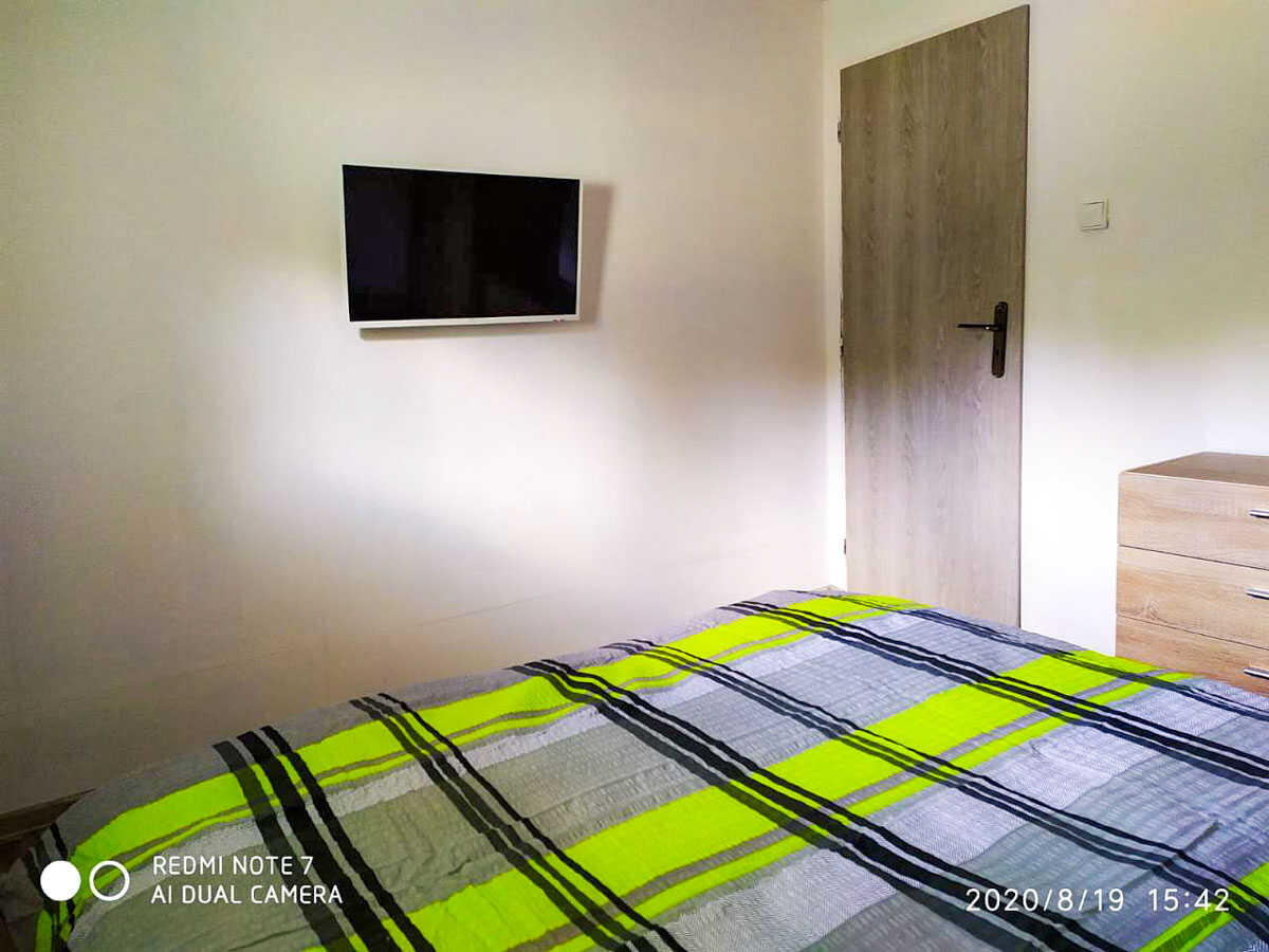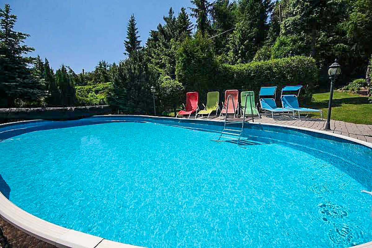 V patře jsou tři ložnice, každá pro dvě osoby a s vlastní TV. Koupelna je moderní, vybavená sprchovým boxem, pračkou i sušičkou. Pro odpočinek poslouží wellness koutek s vířivkou, infrasaunou, masážním křeslem a fitness zónou (rotoped, posilovací stroj). Venku na hosty čeká vyhřívaný bazén (8 × 4 m), zastřešená terasa, gril, pingpongový stůl a ohniště. Nechybí ani dvě garáže a prostor pro parkování.