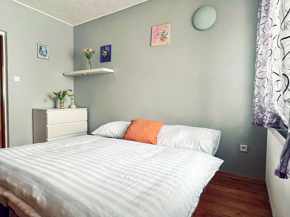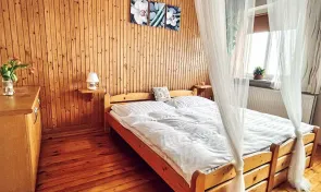 V patře domu se nacházejí čtyři útulné ložnice, každá s kapacitou dvou osob, zařízené s důrazem na pohodlí a domácí atmosféru. Spodní patro doplňuje prostorný obývací pokoj se sedací soupravou, krbovými kamny, Smart TV a knihovnou se společenskými hrami. Tento prostor přímo vybízí k večernímu posezení u praskajícího ohně nebo sledování filmů po dni stráveném na horách.
