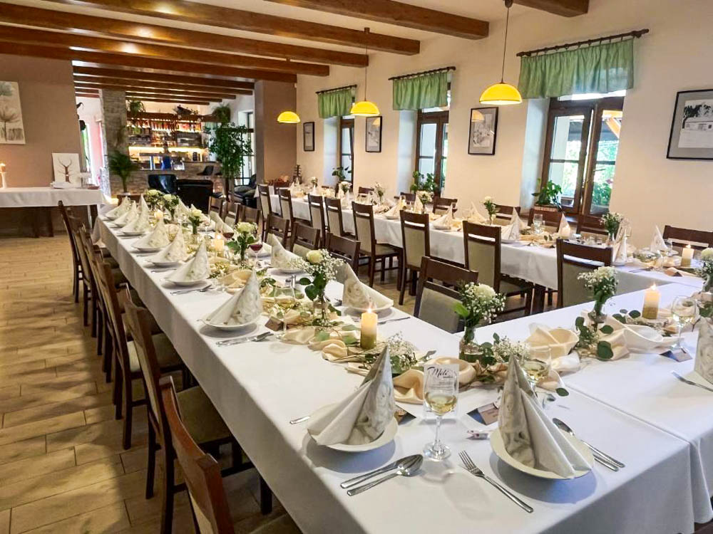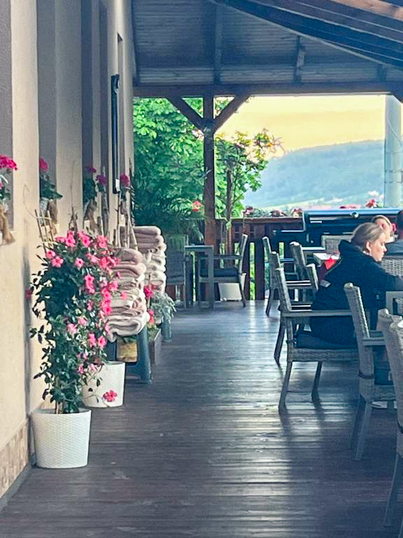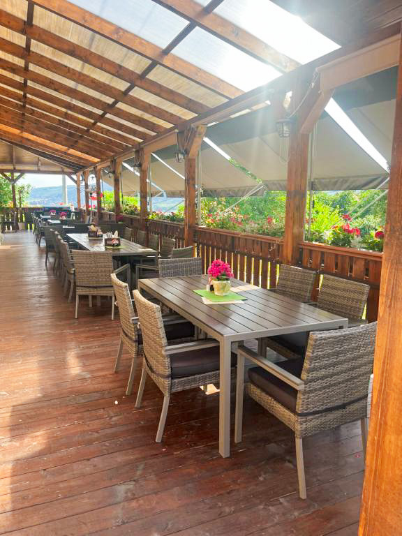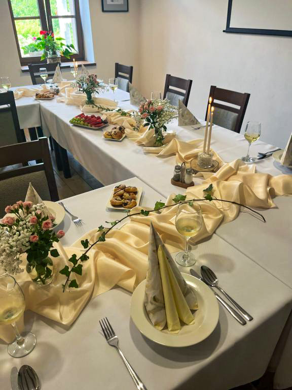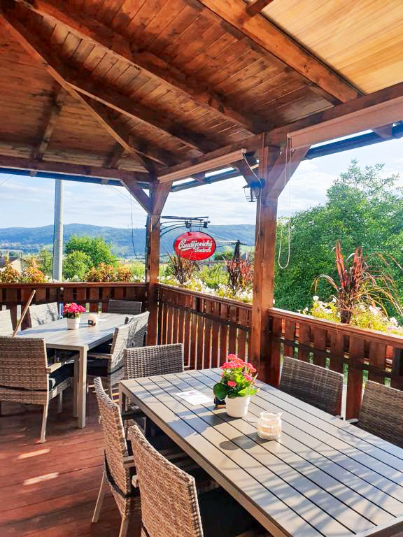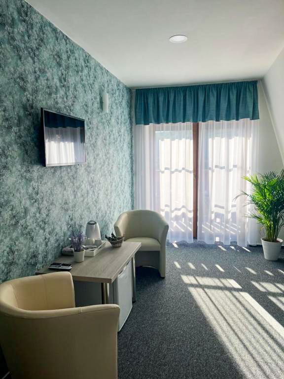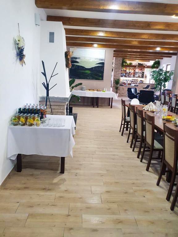 Součástí objektu je také stylová hospůdka s velkou terasou, kde si ubytovaní hosté mohou vychutnat jídlo, kávu nebo večerní posezení s výhledem do okolní krajiny. Na místě je možné přiobjednat snídani, což ocení zejména ti, kteří chtějí den začít bez starostí s vařením. Penzion je nekuřácký a domácí mazlíčci nejsou povoleni, což pomáhá udržet příjemné a čisté prostředí.