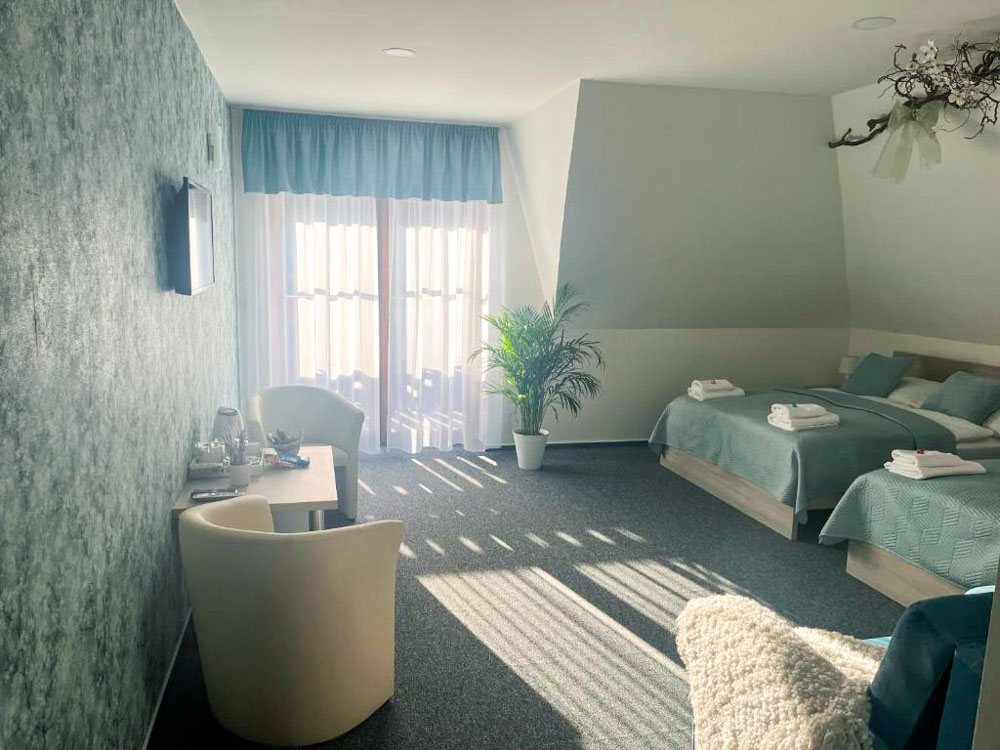 Penzion poskytuje ubytování v nových moderních rodinných pokojích, které jsou navrženy tak, aby hostům nabídly pohodlí během celého roku. Každý pokoj je vybaven dvěma manželskými postelemi, takže pohodlně ubytuje až 4 osoby. Samozřejmostí je vlastní koupelna se sprchovým koutem a toaletou, televize, lednice, Wi-Fi připojení a klimatizace. Díky tomu je pobyt komfortní jak pro páry, tak pro rodiny s dětmi nebo menší skupiny přátel.
