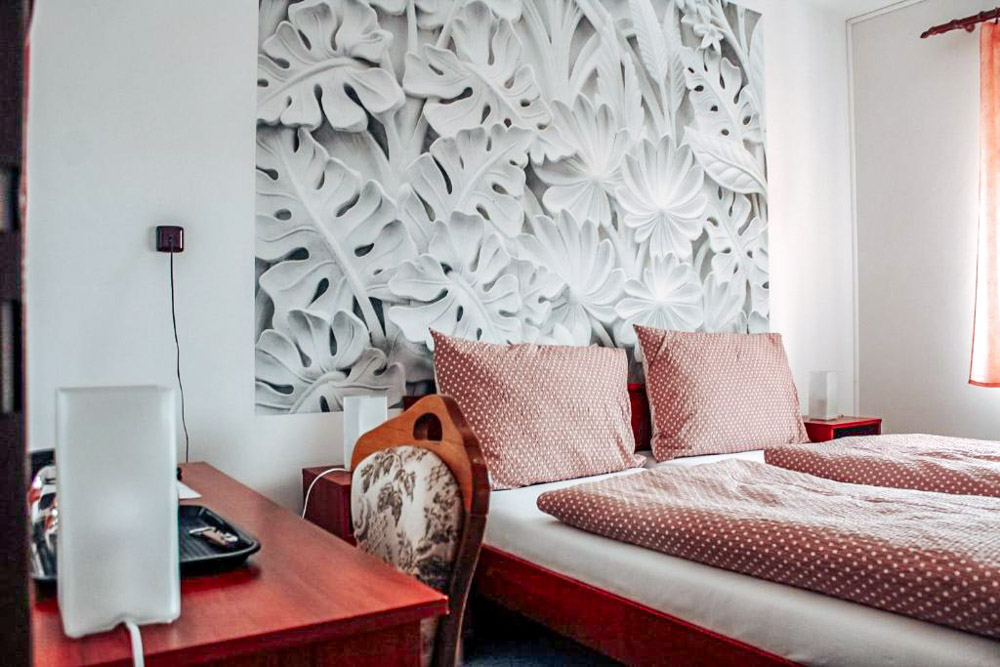 Dvoulůžkový pokoj Standard nabízí praktické uspořádání pro dvě osoby – volit lze mezi manželskou postelí nebo dvěma oddělenými lůžky. Nechybí psací stůl, Smart TV ani koupelna se sprchou a vysoušečem vlasů, což pokoj předurčuje k pohodlnému víkendu i pracovnímu pobytu.