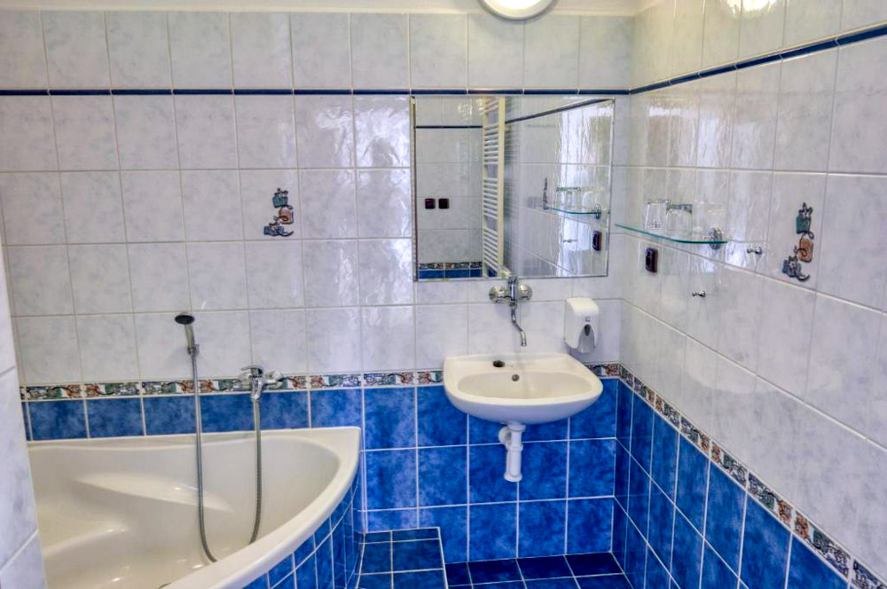 Třílůžkový pokoj Standard je prostornější a poskytuje místo pro tři hosty. Kromě manželské postele je zde rozkládací sofa nebo přistýlka, možnost dětské postýlky a velká koupelna.