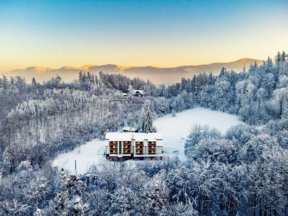 Hotel se nachází přímo v rekreačním areálu Horečky, což je kultovní místo na pomezí Frenštátu a Trojanovic. Přímo od dveří hotelu vás turistická značka vytáhne na Velký Javorník, jeden z nejoblíbenějších beskydských vrcholů s parádním výhledem. Pokud zrovna nemáte náladu na hřebenové túry, můžete prozkoumat unikátní Stezku v korunách stromů (Beskydské nebe), proběhnout se po trailové dráze pro kola nebo si vyzkoušet bosý chodníček u místní zvoničky.