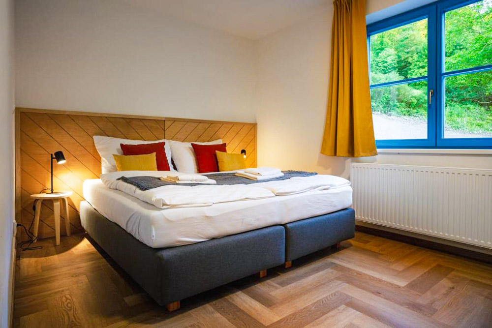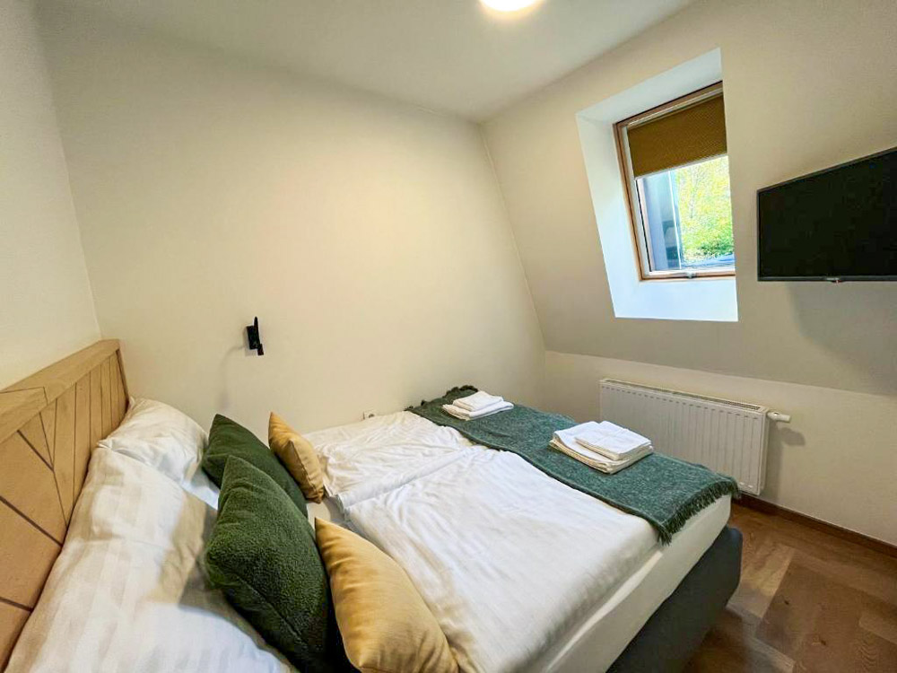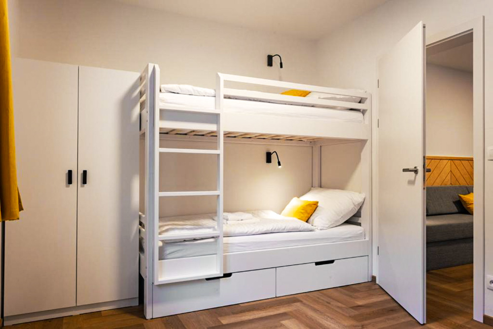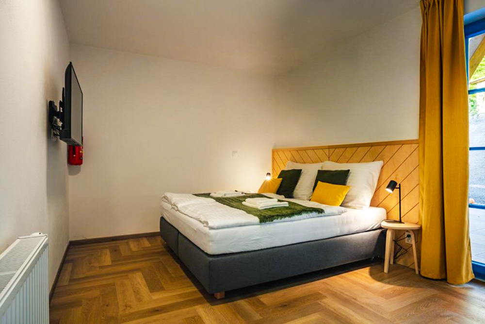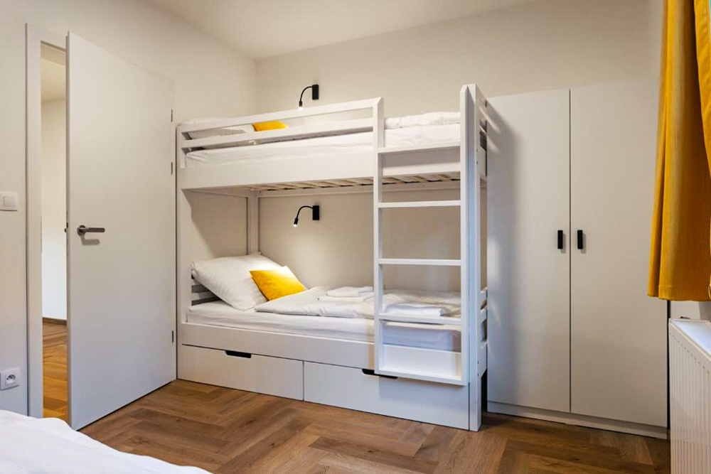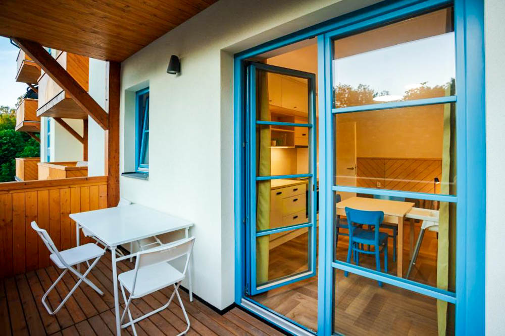 Hosté si mohou vybrat mezi apartmány s oddělenou ložnicí a samostatnou kuchyní, které jsou vhodné především pro rodiny nebo skupiny vyžadující více soukromí, a studii, kde je kuchyňský kout integrován přímo do obytného prostoru. Všechny jednotky bez výjimky disponují vlastním balkonem nebo terasou s venkovním posezením a výhledem do okolních lesů a na beskydské vrcholy.