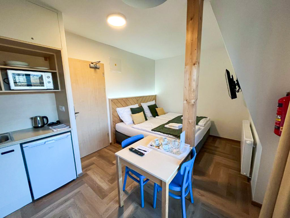 Ubytování v Hotelu Edvard je navrženo s důrazem na maximální nezávislost a pohodlí hostů, ať už přijíždějí na krátký pobyt do hor, nebo na delší rodinnou dovolenou. Hotel nabízí celkem 24 prostorných ubytovacích jednotek, které jsou rozděleny na moderní studia a apartmány. Každá jednotka funguje jako plnohodnotné zázemí s vlastním kuchyňským koutem a dostatkem úložných prostor, což ocení zejména aktivní hosté s větším množstvím sportovního vybavení.