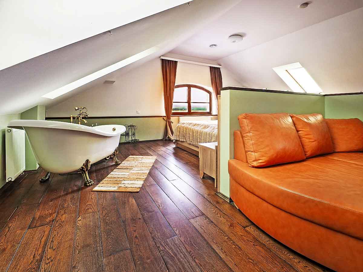 Hotel Vinohrad v Miloticích nabízí pohodlné ubytování v 10 dvoulůžkových a 3 třílůžkových pokojích *** superior. Každý pokoj má vlastní koupelnu se sprchou a WC, klimatizaci, kabelovou televizi, minibar, trezor, telefon, fén a Wi-Fi. Dvoulůžkové pokoje lze připravit také s oddělenými lůžky. Pro hosty, kteří hledají skutečný komfort, je připraveno Apartmá DeLuxe ****. Tento prostorný a světlý pokoj má krbová kamna, velké společné lůžko s krásným výhledem na vinice a elegantní volně stojící vanu. Součástí je i vlastní kuchyňka a velká koupelna s rohovou vanou, sprchovým koutem a odděleným WC.