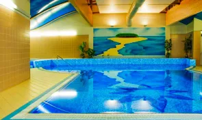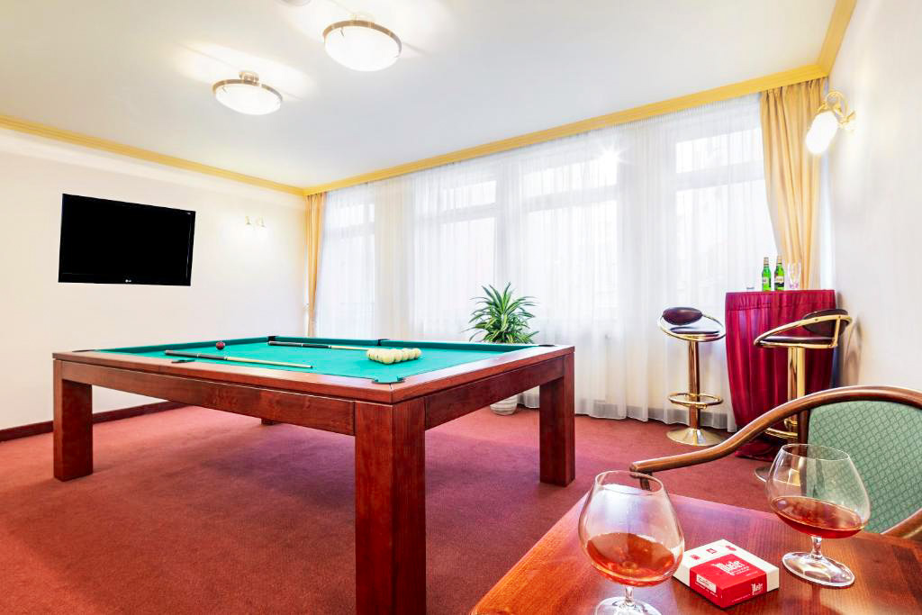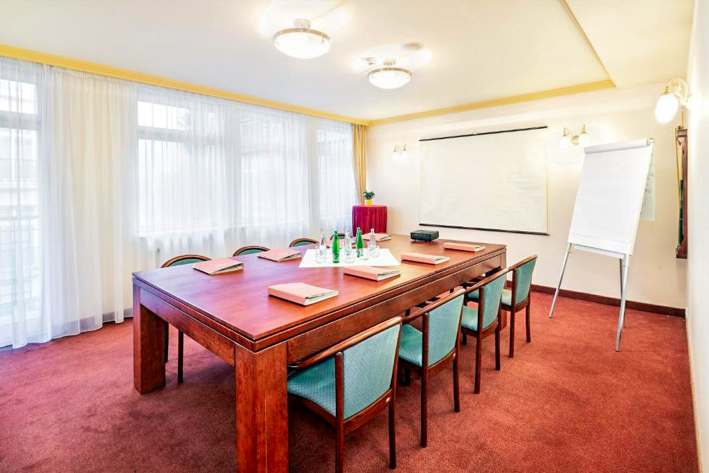 Součástí hotelu je také rozsáhlé zázemí pro relaxaci i pracovní pobyty. Hosté mohou využít wellness centrum s bazénem s protiproudem, vířivkou a saunou, stejně jako fitness centrum vybavené moderními stroji TechnoGym. V hotelu se nachází restaurace s výhledem na město, kde se podávají snídaně formou bufetu i další pokrmy během dne. Pro firemní klientelu nebo menší akce je k dispozici konferenční místnost vhodná pro školení či jednání. Nechybí ani hotelová garáž, která usnadňuje parkování přímo v lázeňském centru.