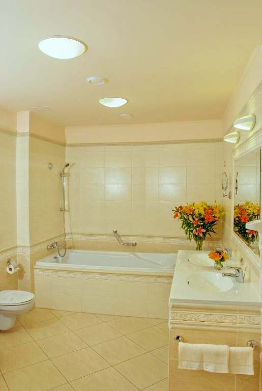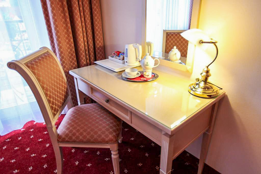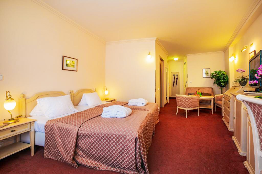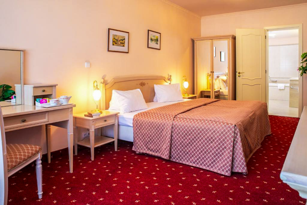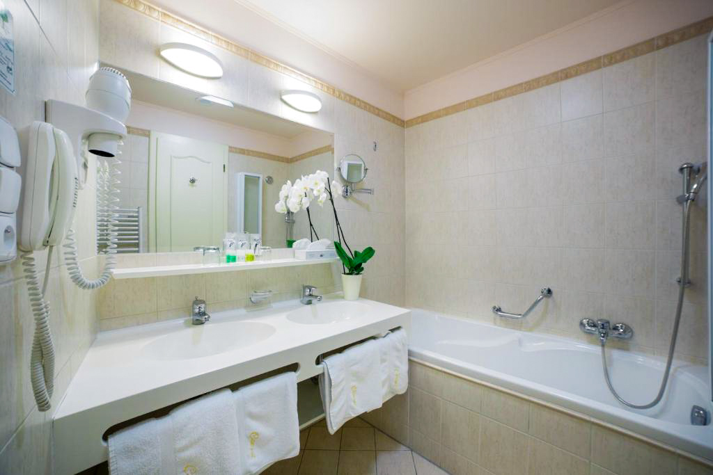 Standardní vybavení pokojů zahrnuje vlastní koupelnu se sprchou nebo vanou, toaletu, vysoušeč vlasů a kosmetické zrcátko. Samozřejmostí je LCD televizor se satelitním příjmem, telefon, trezor, minibar a Wi-Fi připojení. Ve vyšších kategoriích pokojů je rozšířený komfort doplněn o župany, pantofle, bidet, šatnu nebo deštník. Apartmány poskytují více prostoru a oddělené obytné části, což ocení hosté při delších pobytech nebo náročnější klientela.