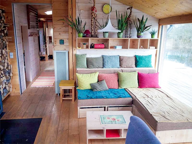 Přední větší část disponuje 3 ložnicemi, 6 lůžky a 2 přistýlkami a nabízí prostornější a nadstandardně vybavené zázemí. Součástí je velká plně vybavená kuchyně (včetně myčky, robotů, mixérů či velké lednice a mrazáku), fitness a také wellness prvky jako vnitřní parní sauna, venkovní suchá sauna a venkovní vana. K dispozici je terasa, molo, ohniště i člun, případně zapůjčení paddleboardů a možnost objednání masáže.